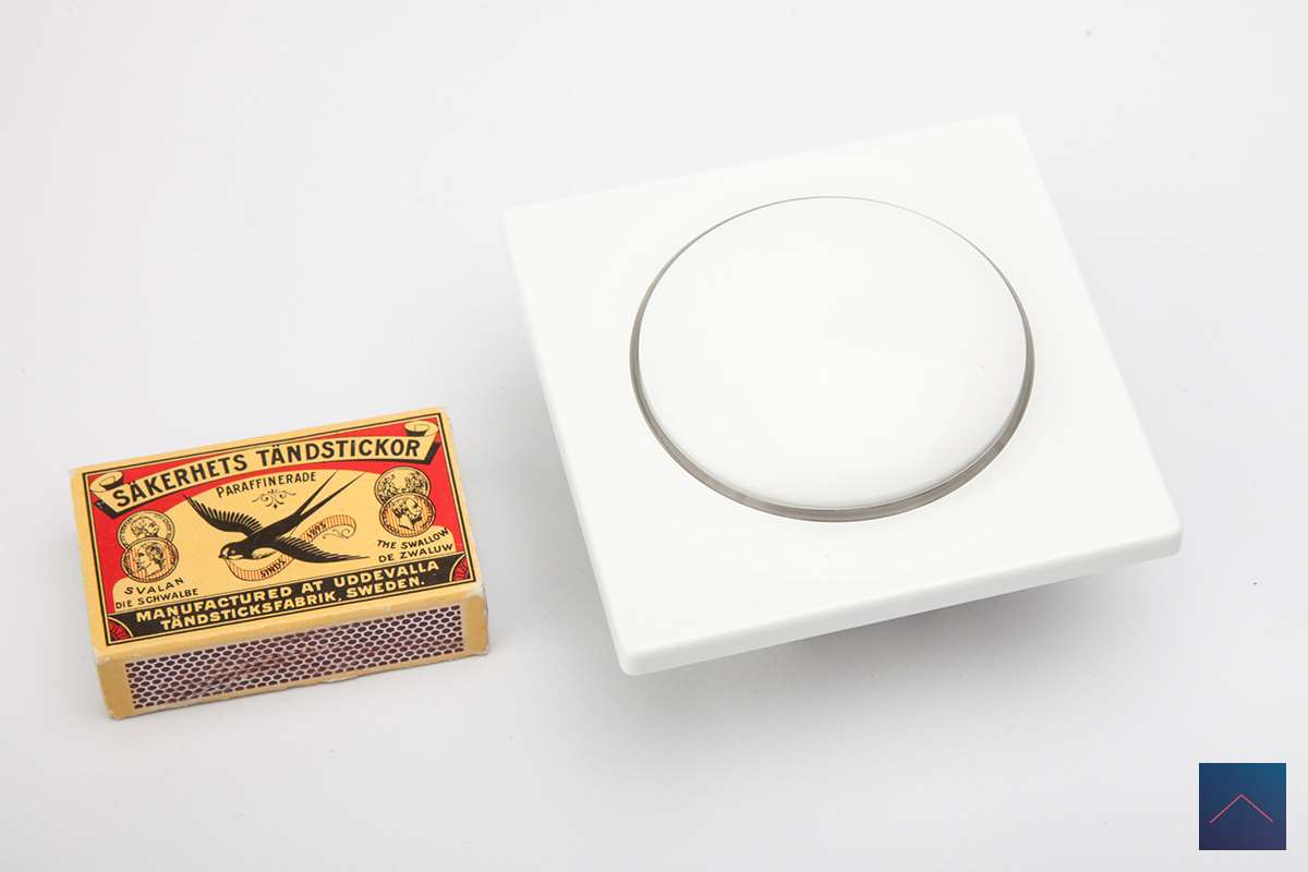 Deze Walli kan natuurlijk aan- en uitgezet worden. Dit gaat iets anders dan bij een normale schakelaar. Als je bovenin klikt gaat hij aan en als je onderin klikt gaat hij weer uit. Je kunt de aangesloten lamp dimmen door de knop ingedrukt te houden.