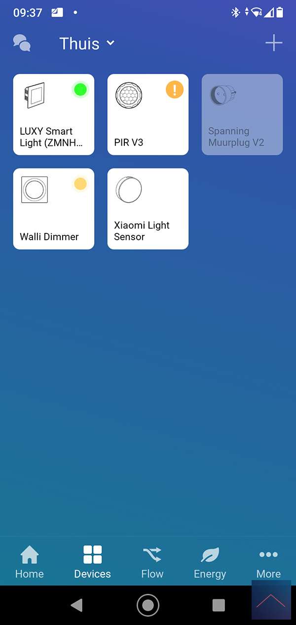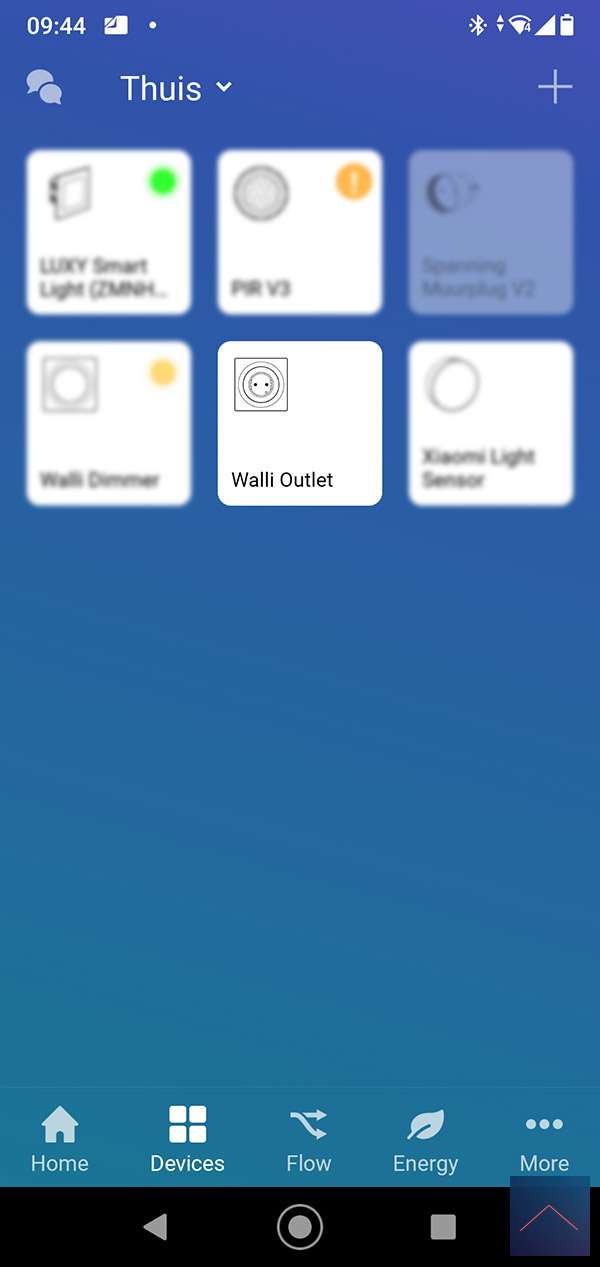 Als je alles weer van stroom voorzien hebt loggen we in op de Homey en gaan naar onze apparaten. We drukken vervolgens op het plusje en zoeken de Walli op.