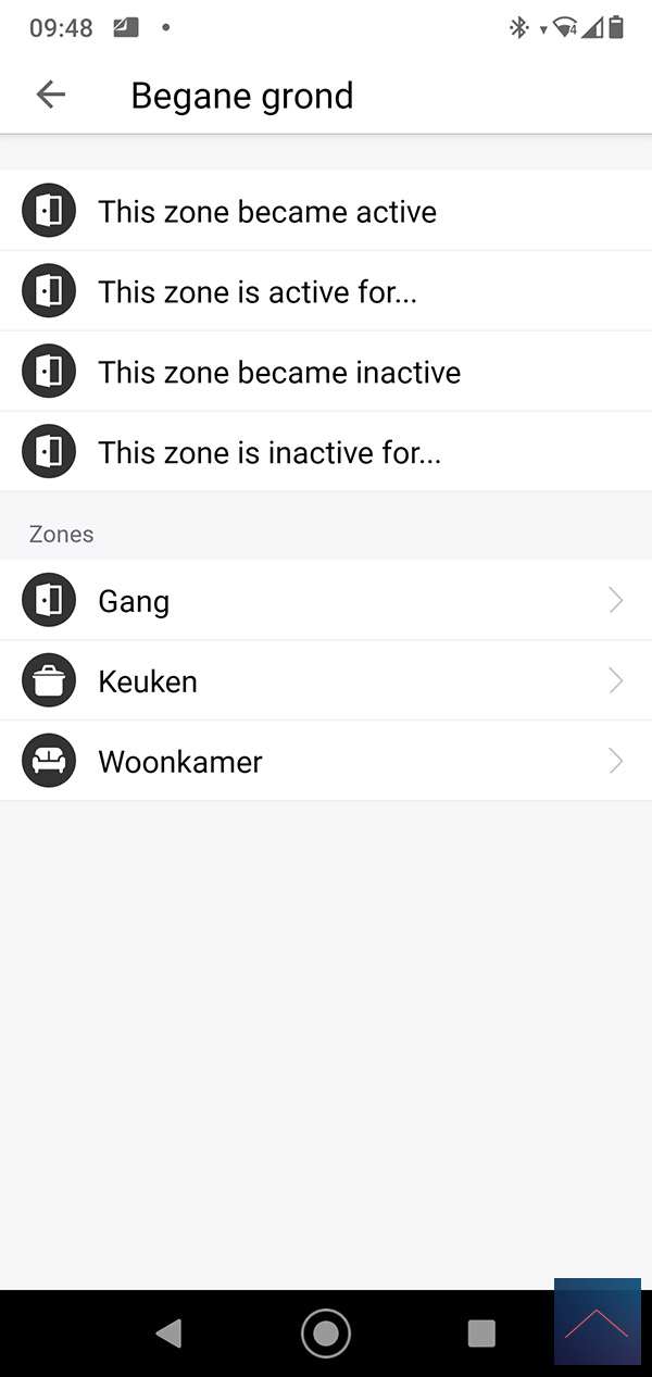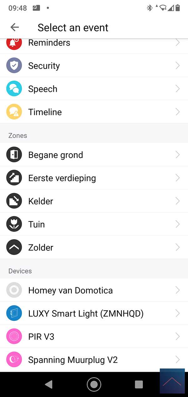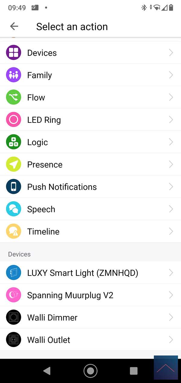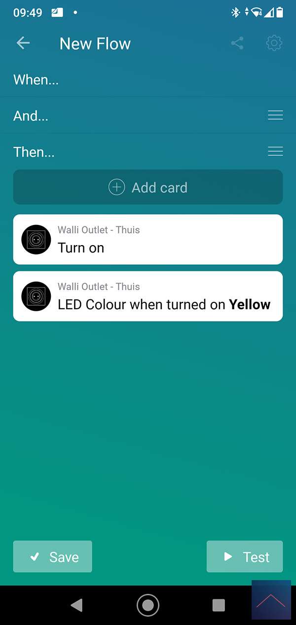We maken als voorbeeld dat als er beweging is op de de begane grond, en ik ben thuis, dat de Walli aangezet wordt en de LED geel gaat branden.