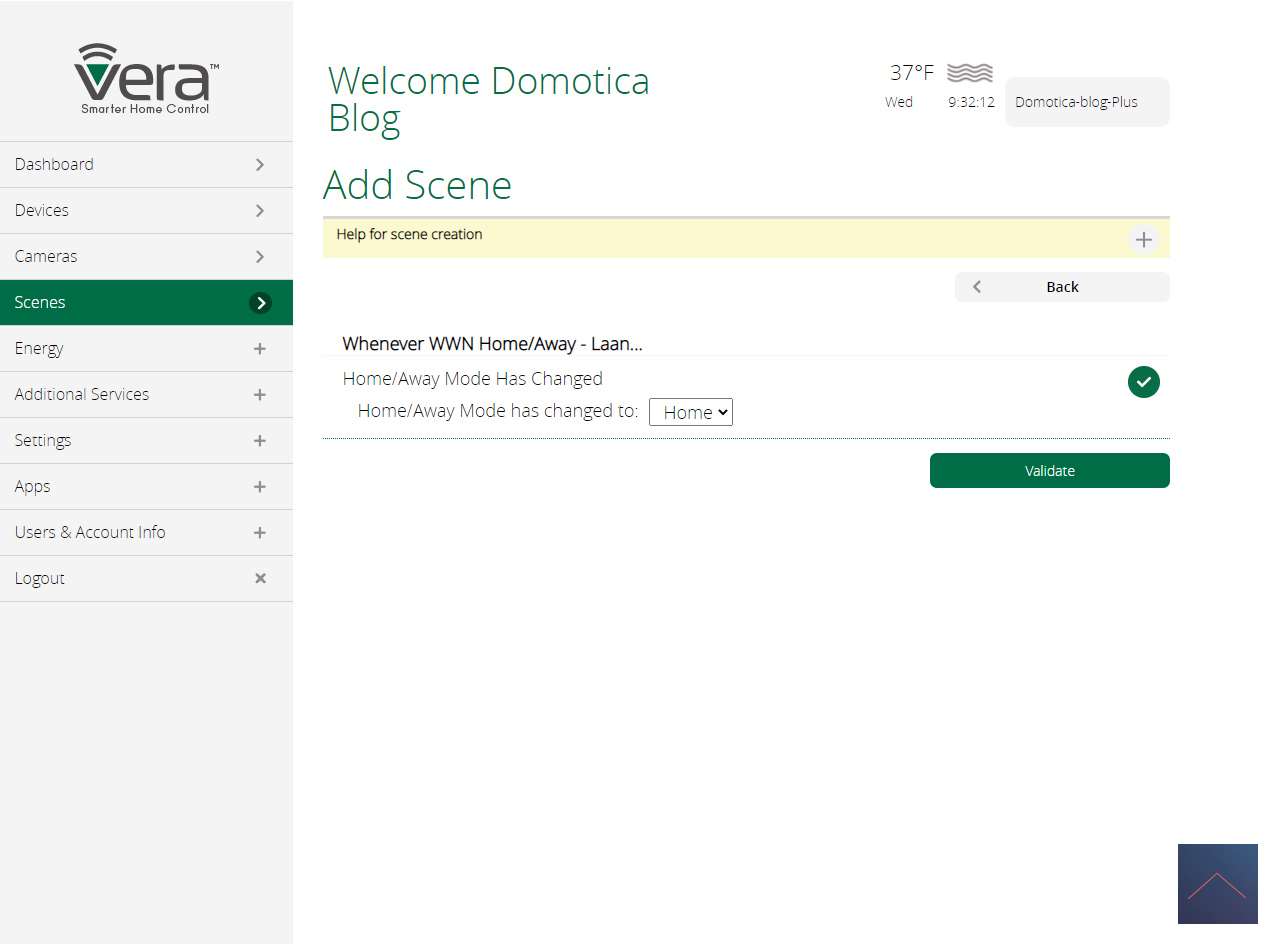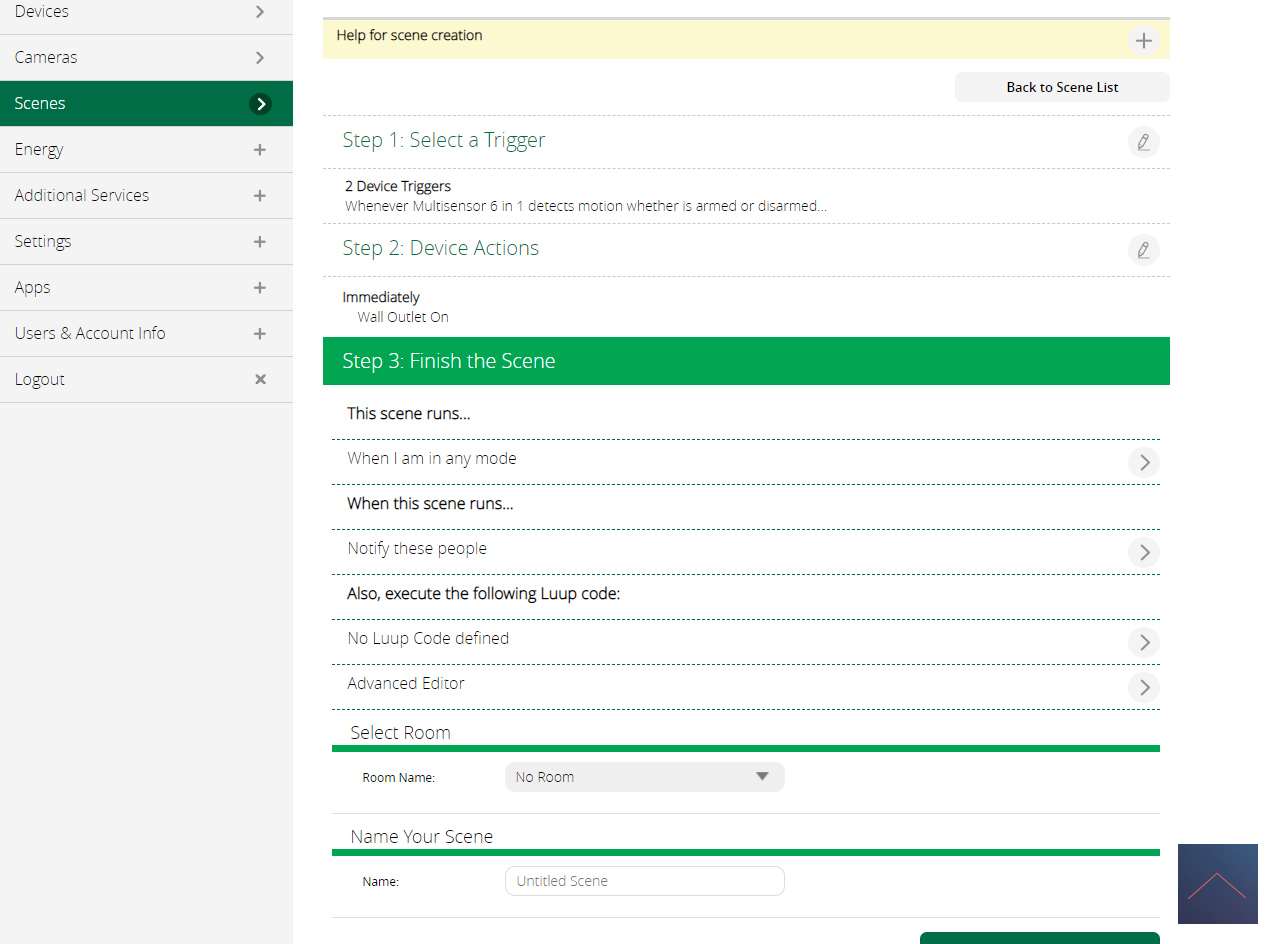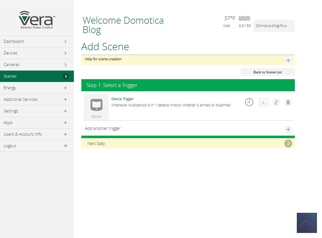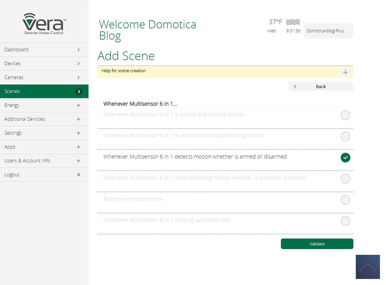 We maken als voorbeeld dat als er beweging is in de hal, en ik thuis kom, dat de Walli aangezet wordt.
