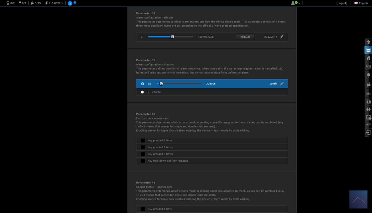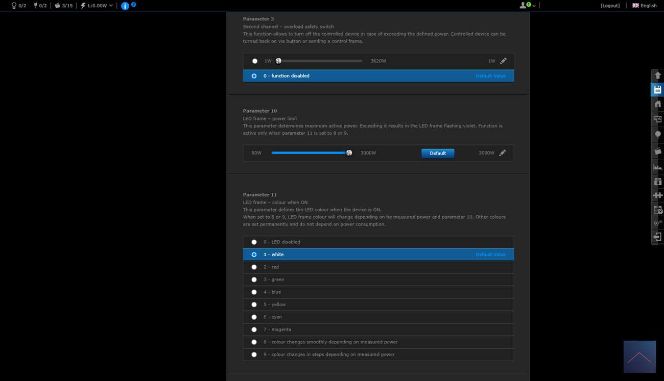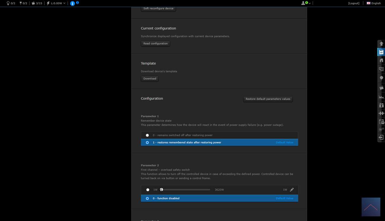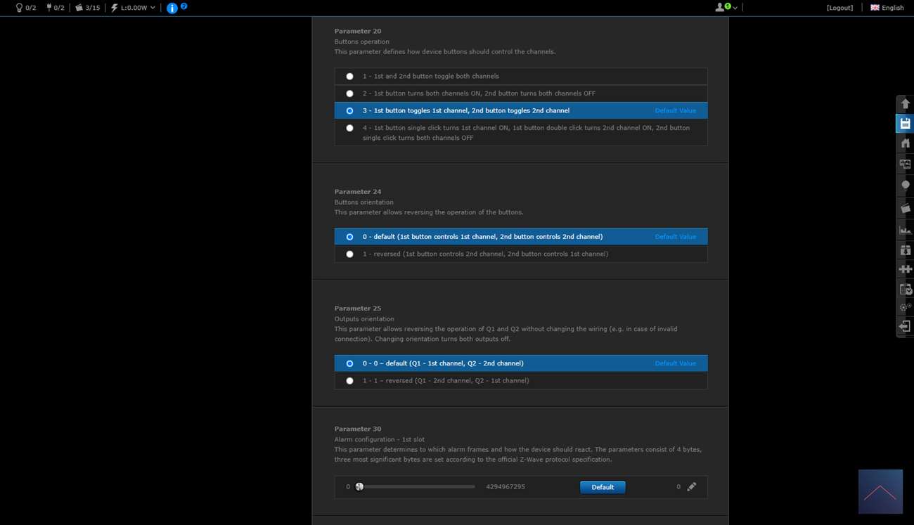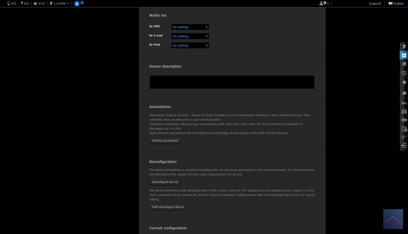 Je krijgt 2 schakelaars en een scene schakelaar. Deze laatste is om bv de 2x klik te regelen. Je ziet ook het totaal verbruik en huidige verbruik.
