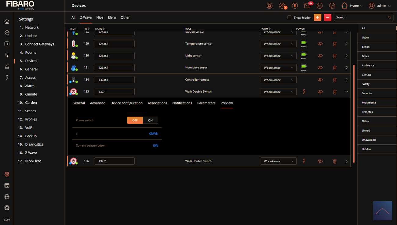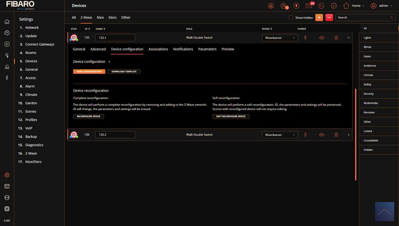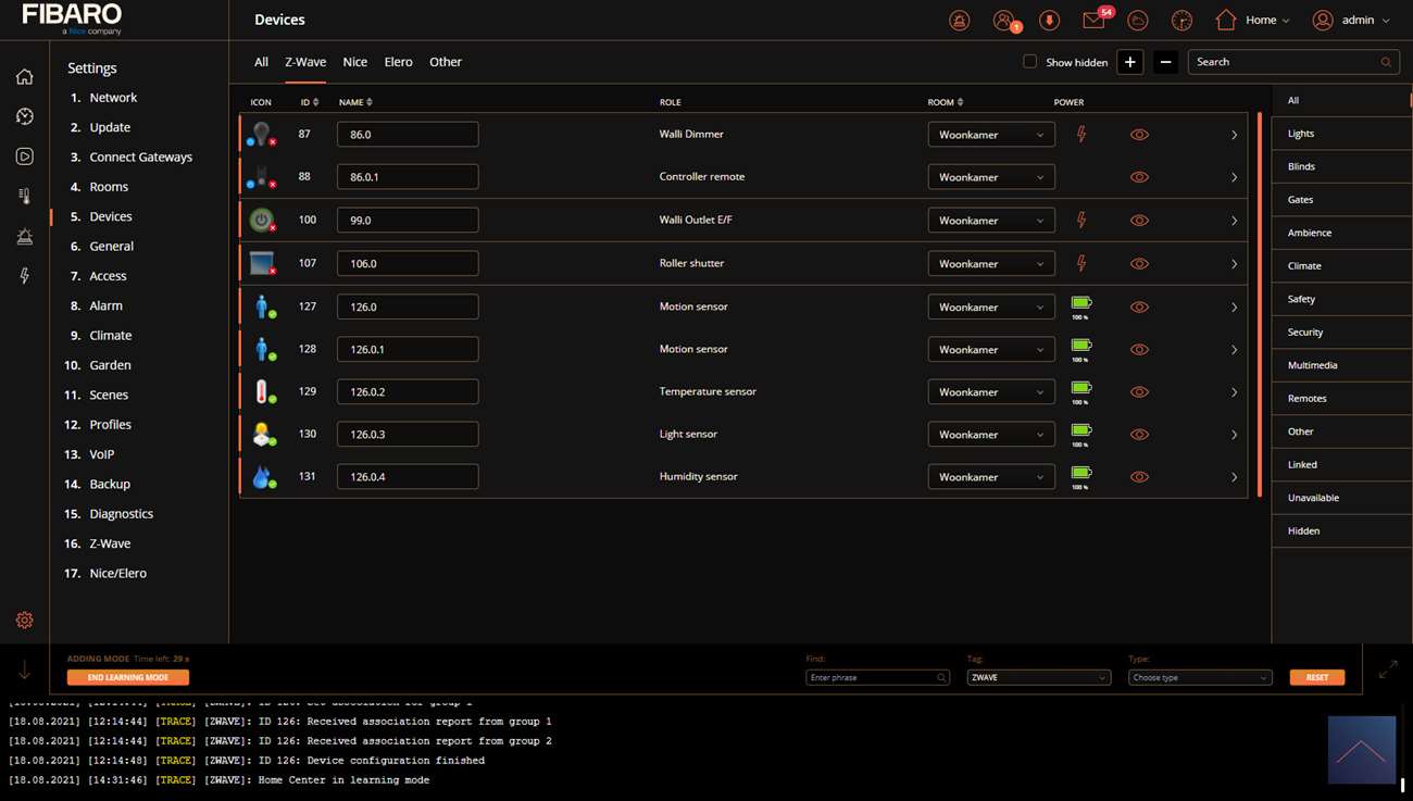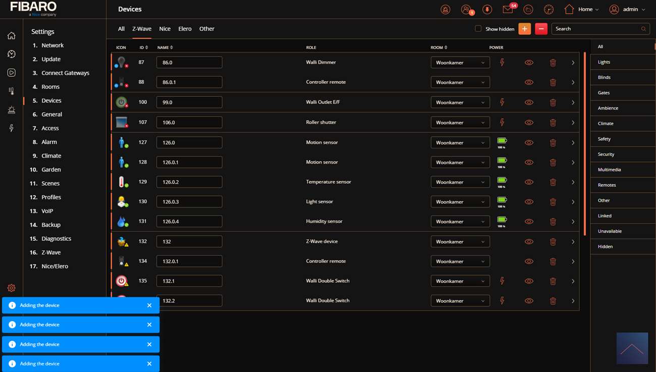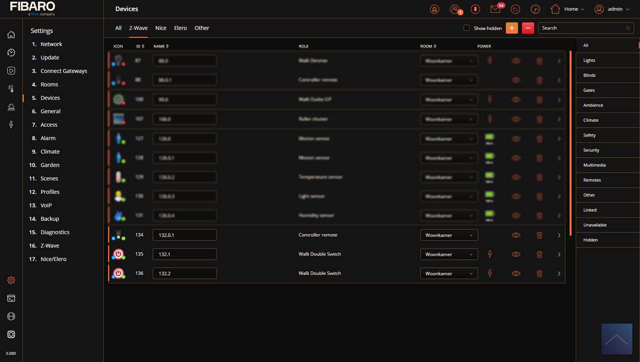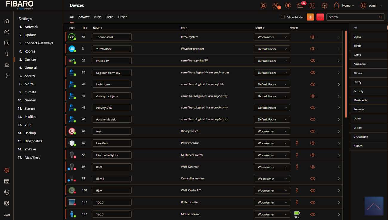 Na even wachten zie ik alle functionaliteiten verschijnen bij mijn apparaten. Zoals verwacht werkt alles zoals het hoort. Ik geef als laatste de Walli meteen de juiste naam en zet hem in kamer zodat ik hem zo direct niet kwijtraak.