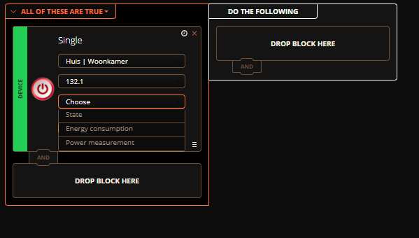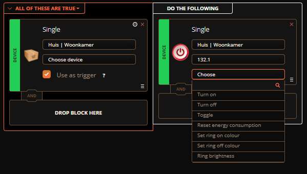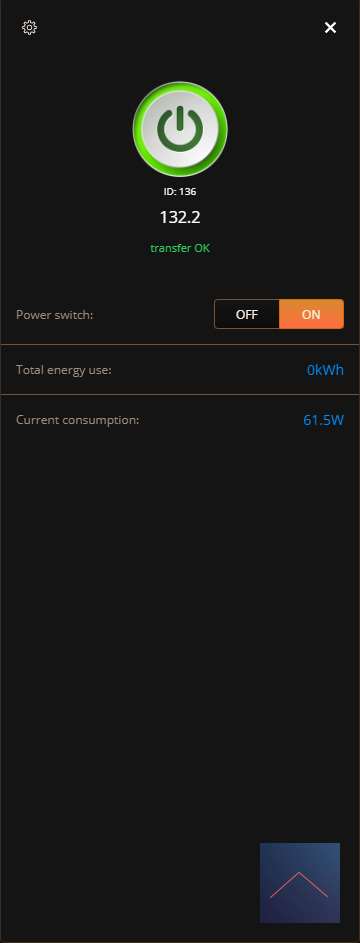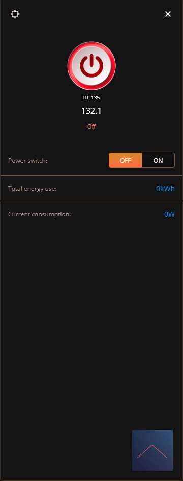 Je krijgt 2 schakelaars en een scene schakelaar. Deze laatste is om bv de 2x klik te regelen. Je ziet ook het totaal verbruik en huidige verbruik.
