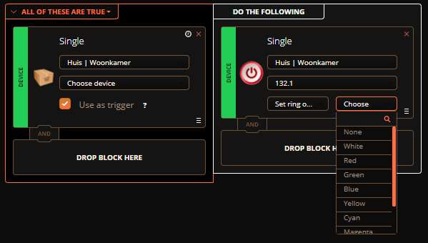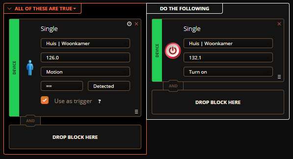 We maken als voorbeeld dat als er beweging in de hal is dat dan de Walli aangezet moet worden.