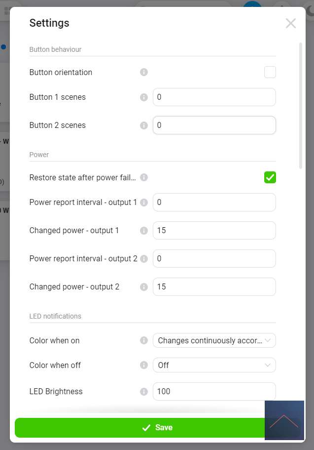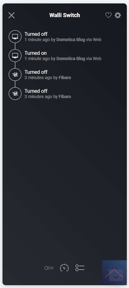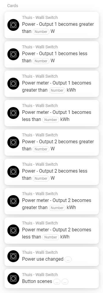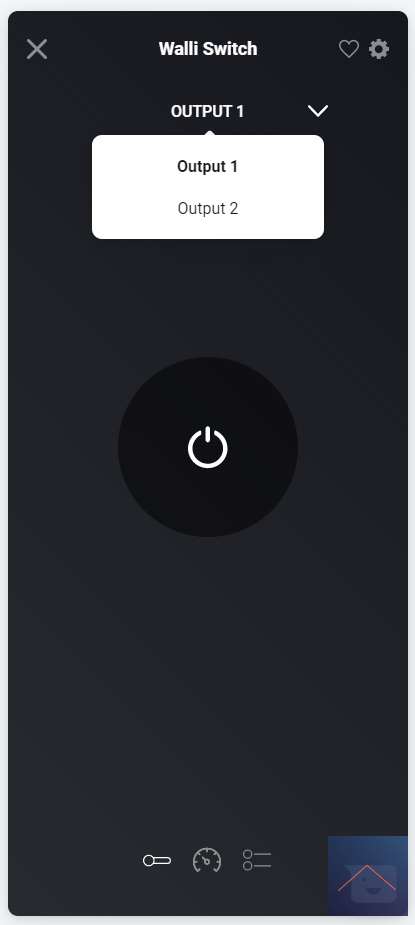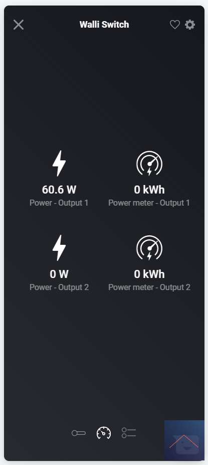 Je krijgt 2 schakelaars om de aangesloten lamp aan- of uit te zetten. Je ziet ook het totaal verbruik en huidige verbruik.
