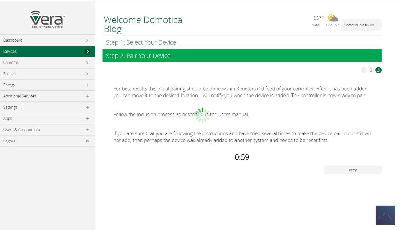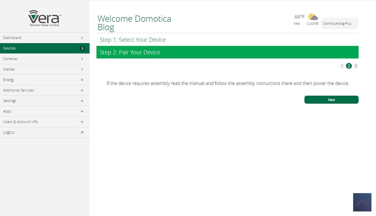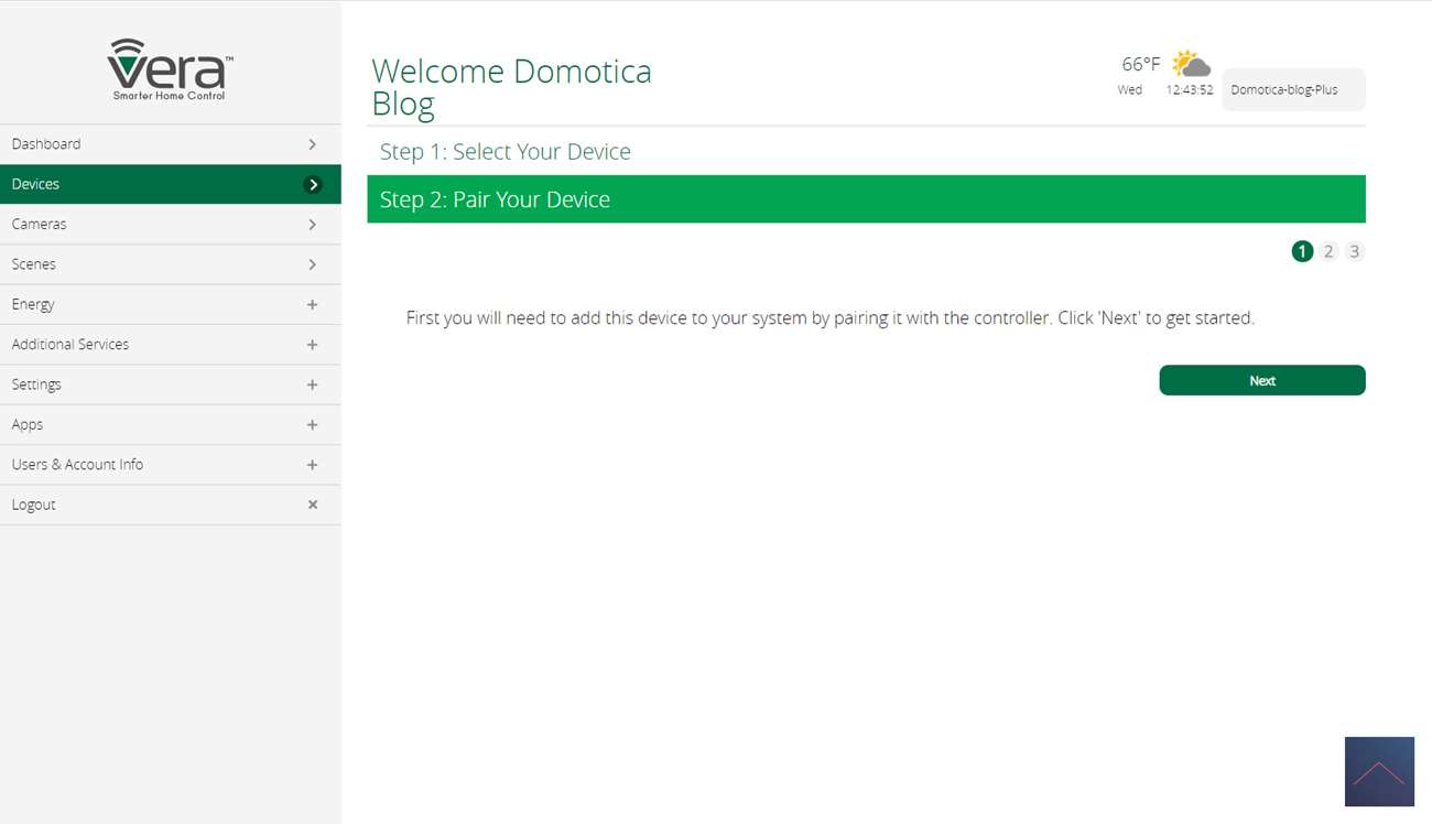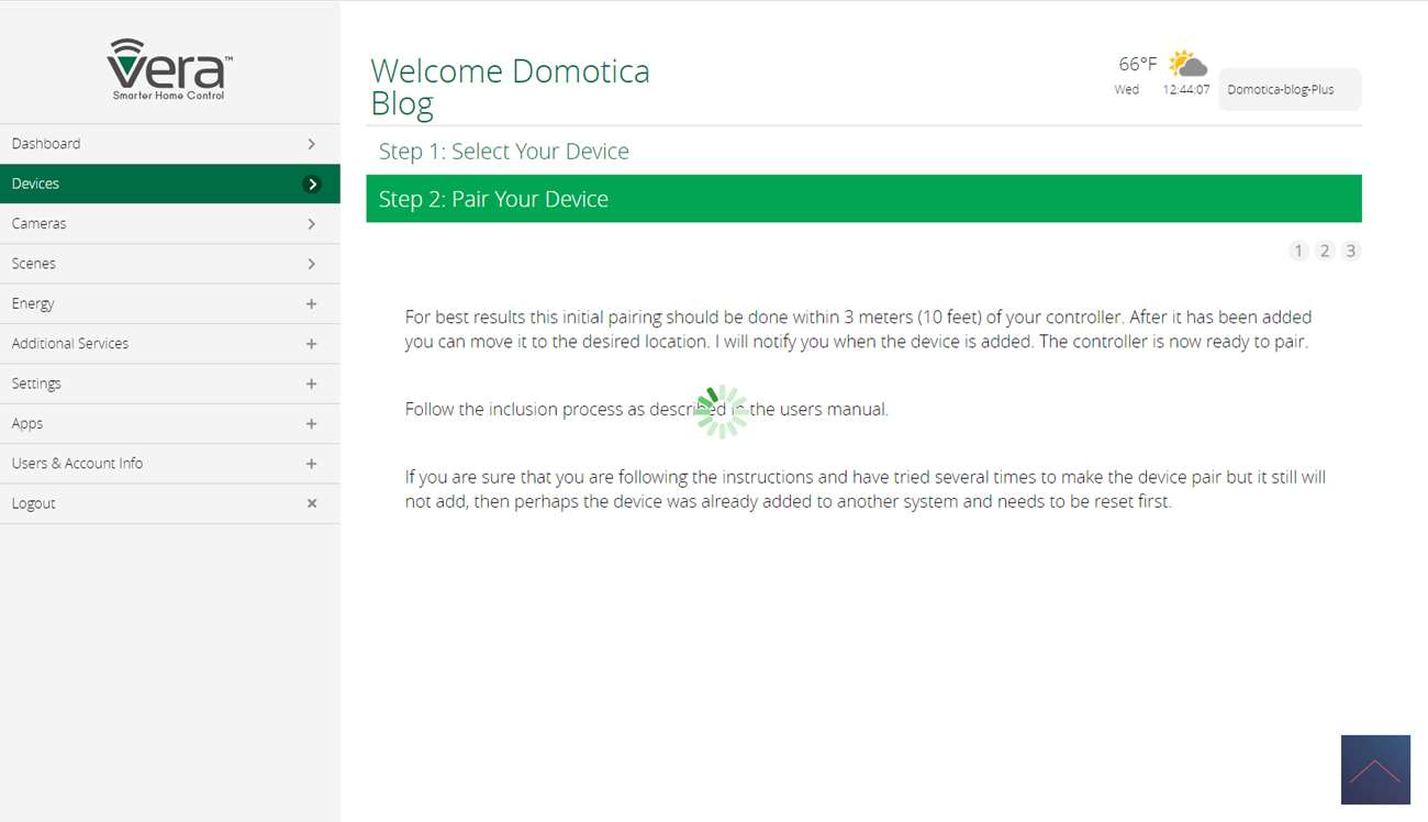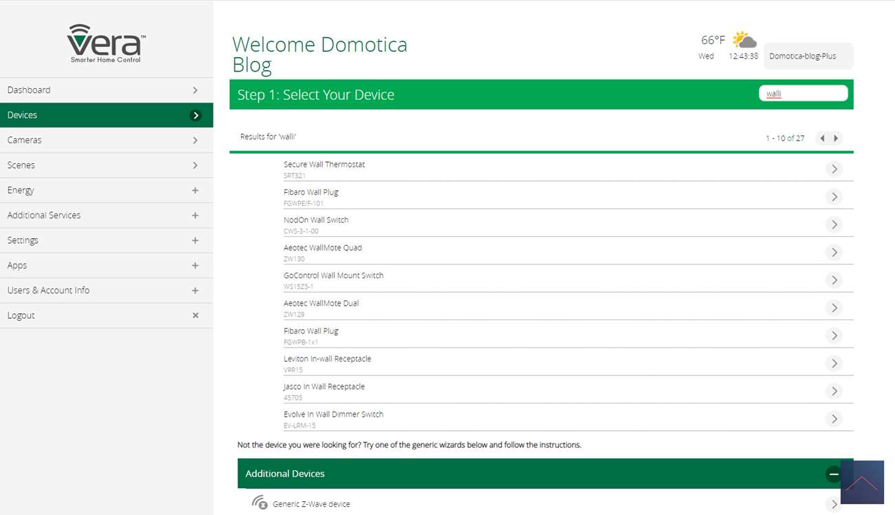 Om dit voor elkaar te krijgen log ik in op de Vera en ga naar me apparaten. Klik vervolgens op "add device" en klik op "generic z-wave" want als je zoekt op Walli staat hij niet in de lijst. Druk vervolgens een paar keer op next tot je bij het scherm komt dat er gevraagd wordt om de switch in leerstand te zetten.