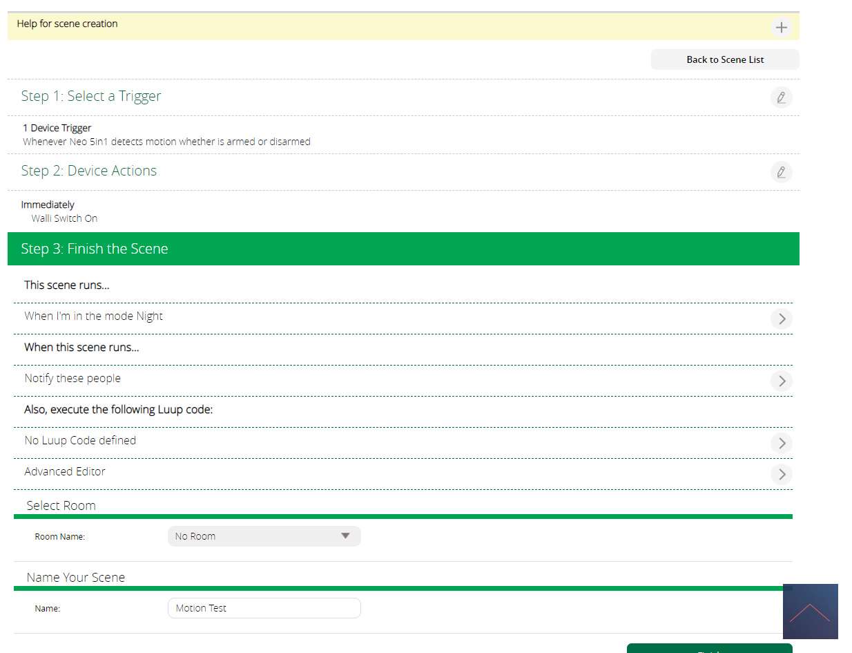 We maken als voorbeeld dat als er beweging in de hal is dat dan de Walli aangezet moet worden.