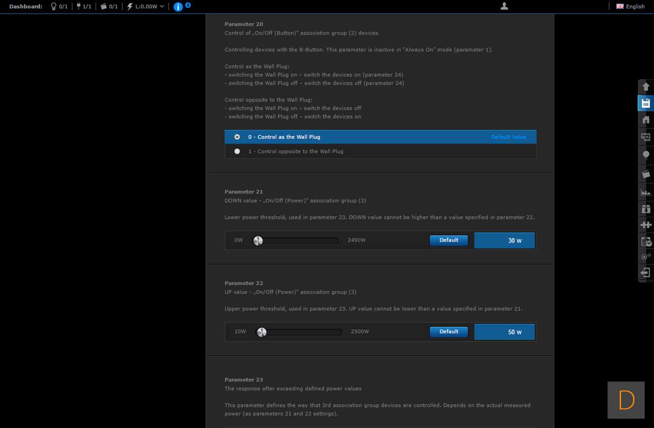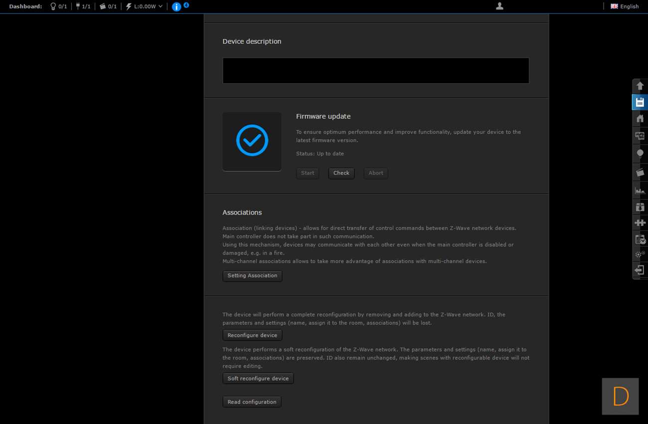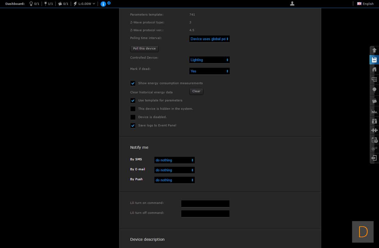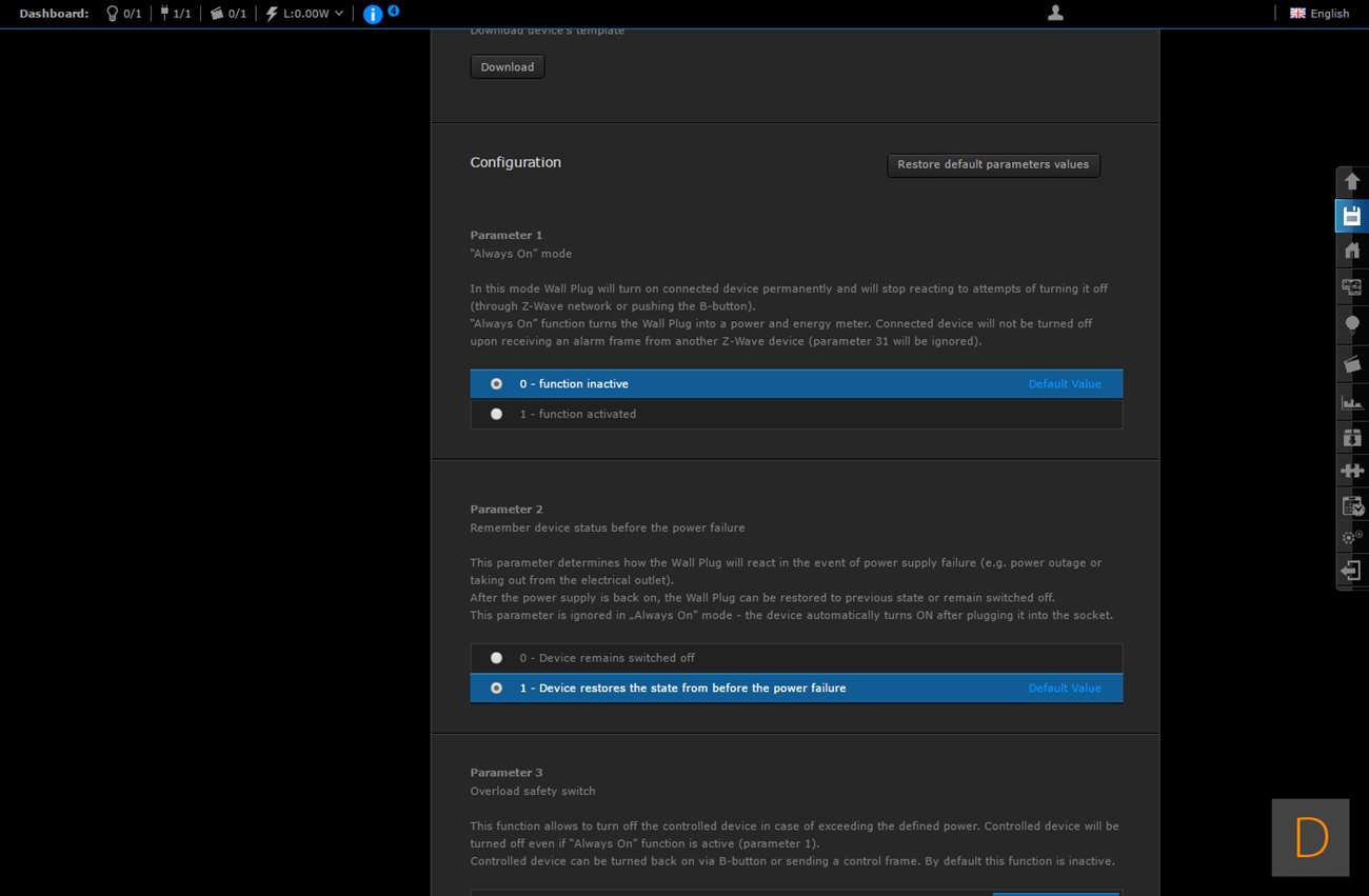 Het toevoegen van deze Wall Plug moet natuurlijk perfect werken via de HC2, het is tenslotte hun eigen product. We gaan zien of dit ook het geval is. Het toevoegen gaat door in te loggen en naar het "devices" gedeelte te gaan. Vervolgens klik je op "add or remove device", en hierna op "add". Het aftellen zal dan beginnen. Vervolgens is het een kwestie van de Wall Plug in het stopcontact te stoppen of 3 keer op het knopje aan de bovenkant te klikken. Hij werd hierna netjes gevonden en toegevoegd. Hij kwam wel met de melding dat er geen template beschikbaar is.