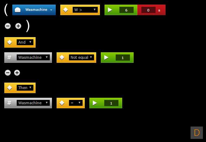 Ik wil graag een regel maken om te weten of mijn wasmachine klaar is met was. De Fibaro Wall Plug heeft een ingebouwde energiemeter welke je hiervoor kunt gebruiken. Omdat hij altijd van stroom is voorzien kun je bijna een realtime meting doen. Als eerste heb ik gekeken wat het energie voorloop is. Zo kwam ik er achter dat tijdens een wasbeurt het verbruik weleens flink kan zakken en dat als hij klaar is het verbruik niet 0 W is.