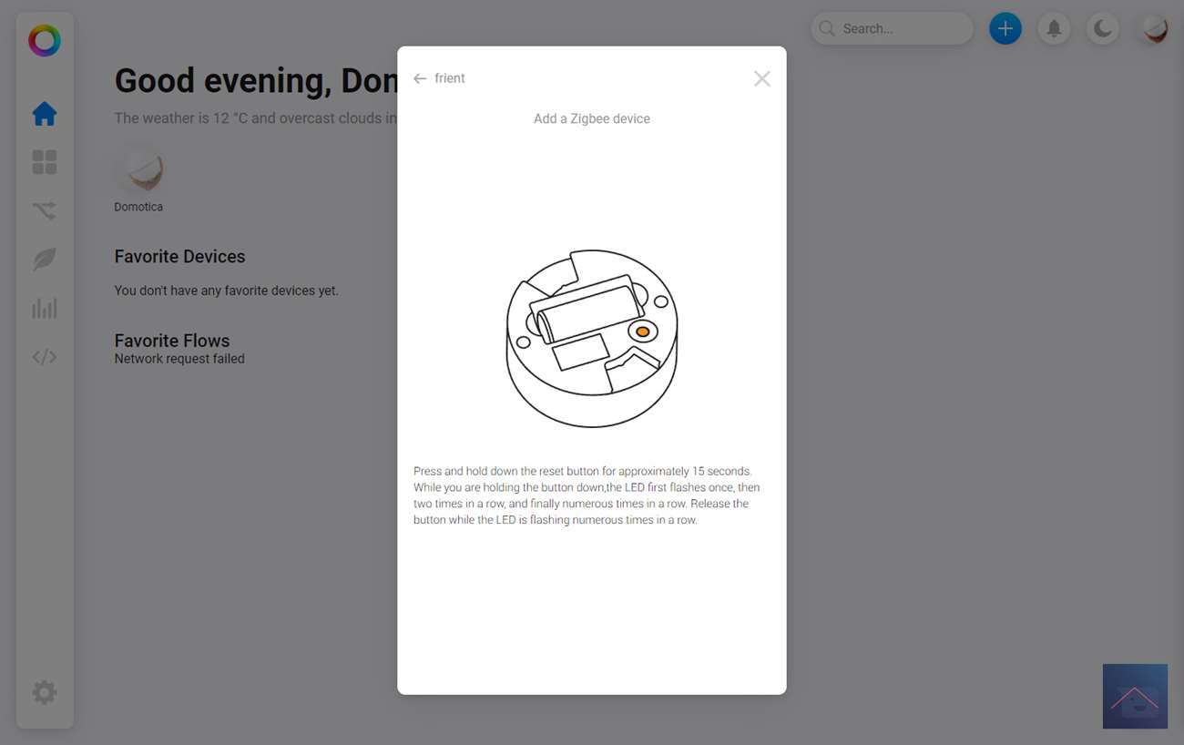 Nu zal de Homey de APP installeren en vragen om de sensor te resetten. We draaien nu de beugel los van de sensor en verwijderen het lipje bij de batterij. De sensor werd hierna direct gevonden.