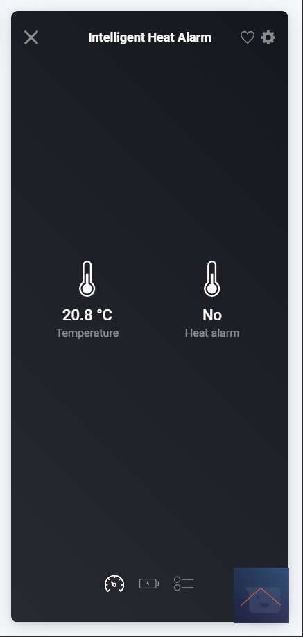 Op mijn dashboard van de Homey krijg ik een temperatuursensor en alarm.