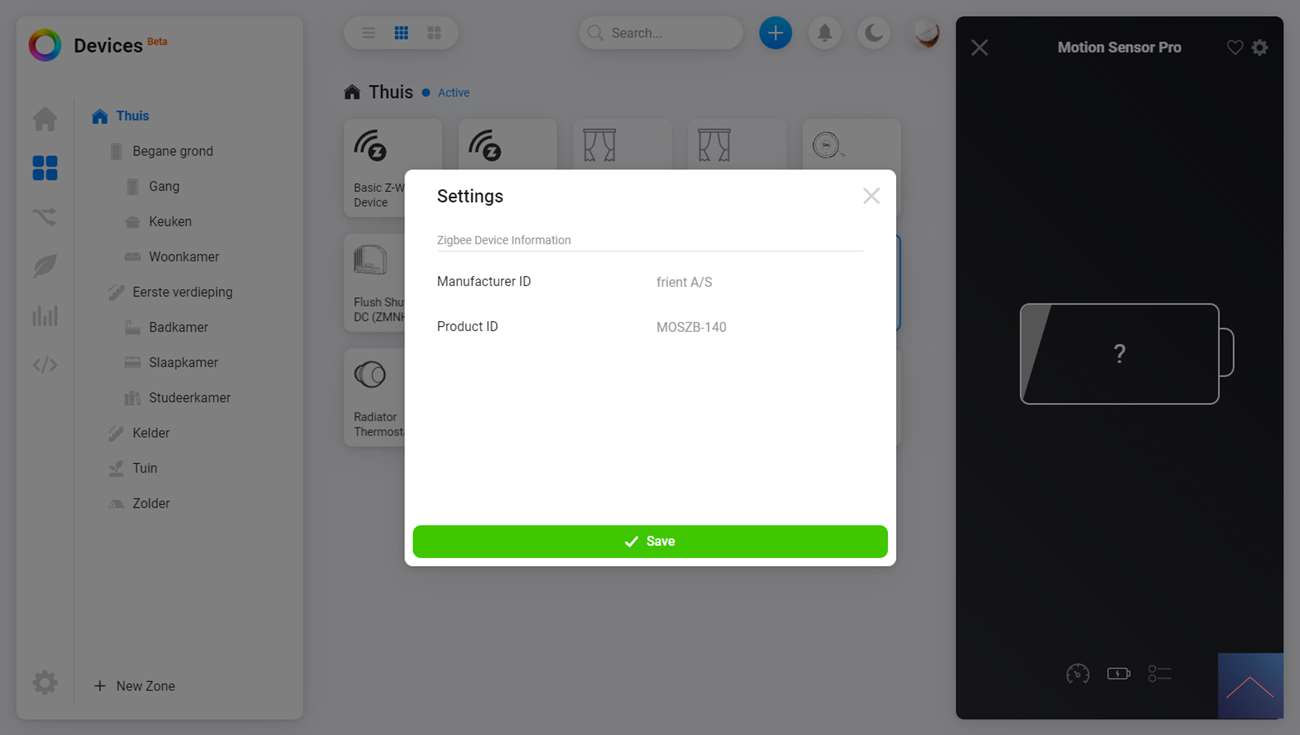 Na het toevoegen duurt het even tot de bewegingsmelder een waarde doorgeeeft.