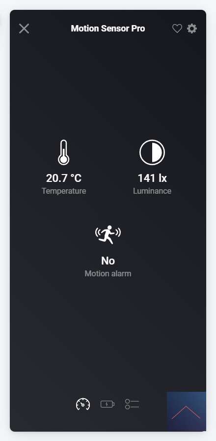 Zodra er beweging wordt gedetecteerd gaat er een signaal naar de Homey en zien we dat er beweging is. De temperatuursensor wordt na minimaal 1 minuut of maximaal 10 minuten automatisch geupdate als er een verandering is van 0,1 graden. De lux meter wordt elke 10 minuten voorzien van een nieuwe waarde.