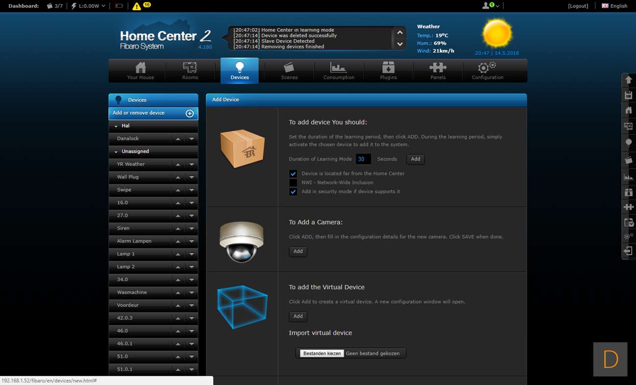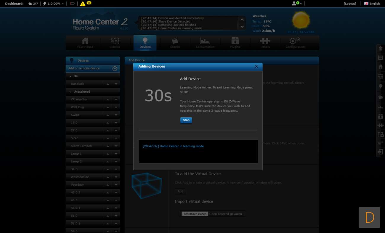 Installatie via de Fibaro Home Center 2:
