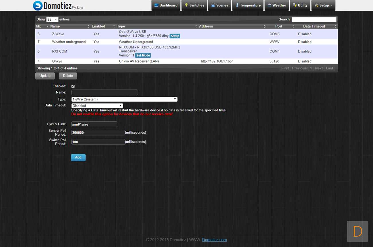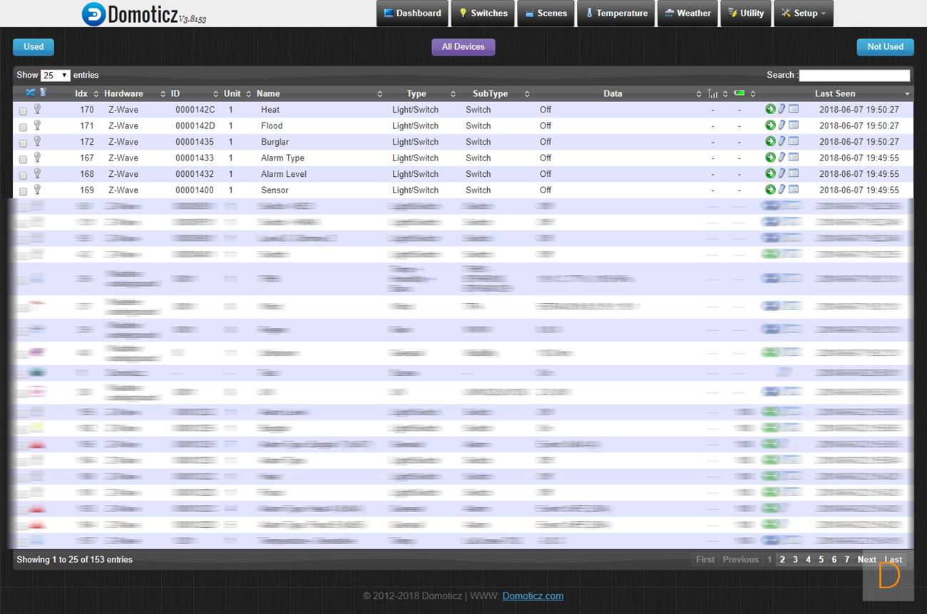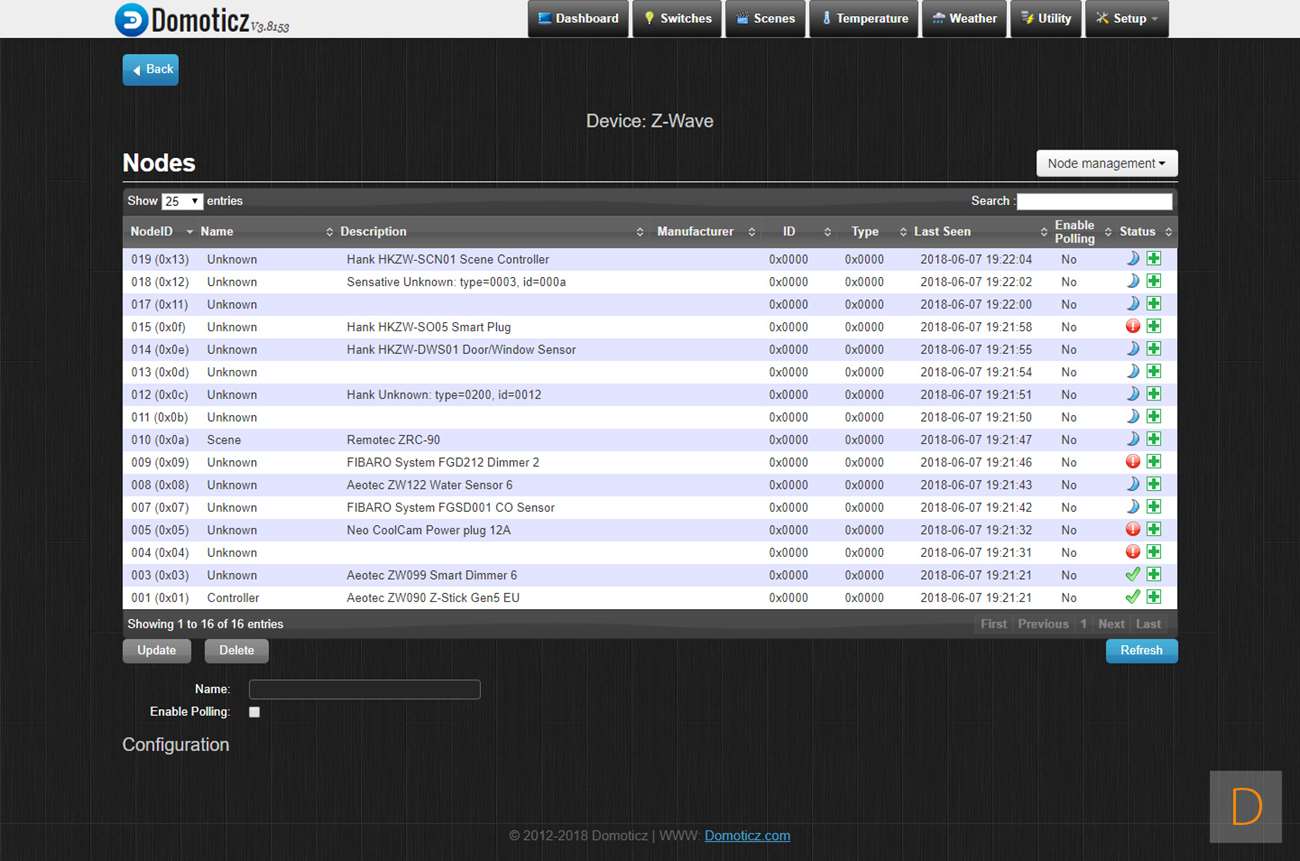 Als laatste controller is Domoticz aan de beurt. Je kunt het toevoegen starten door naar het menu item "setup" en daarna naar "hardware" te gaan. Vervolgens klik je op setup van de Aeon Labs controller en ga je naar include node secure (aan de rechterkant). Hierna verwijder je het lipje bij de batterij en druk je 3x op de button boven de batterij. Het LEDje zal oranje knipperen om aan te geven dat het toevoegen gelukt is. Zorg dat je dichtbij de controller blijft.