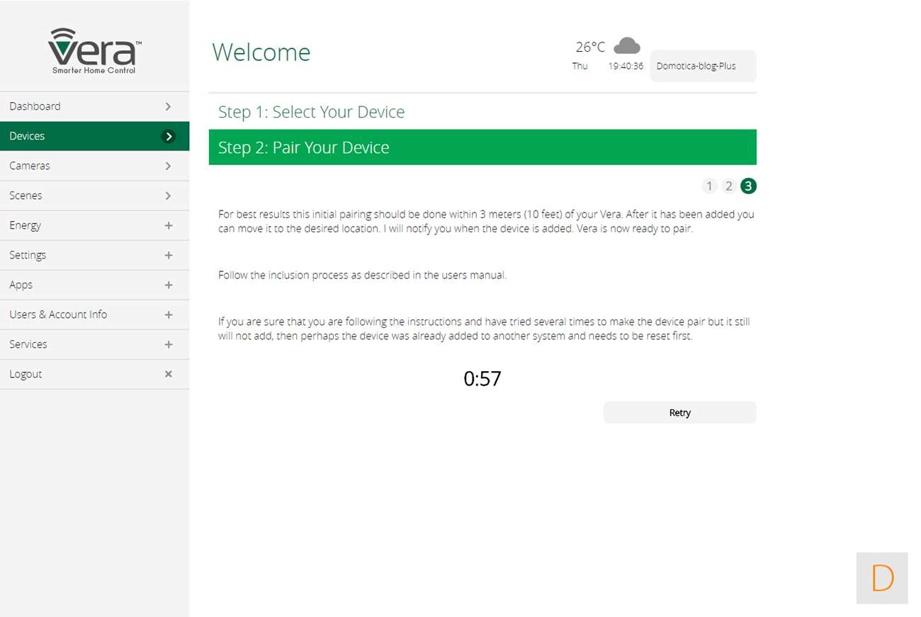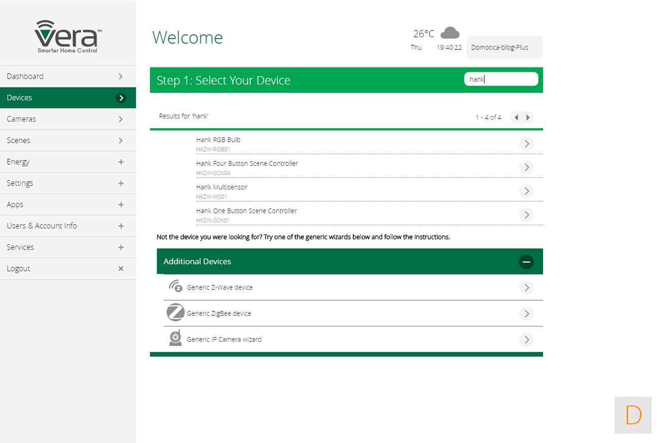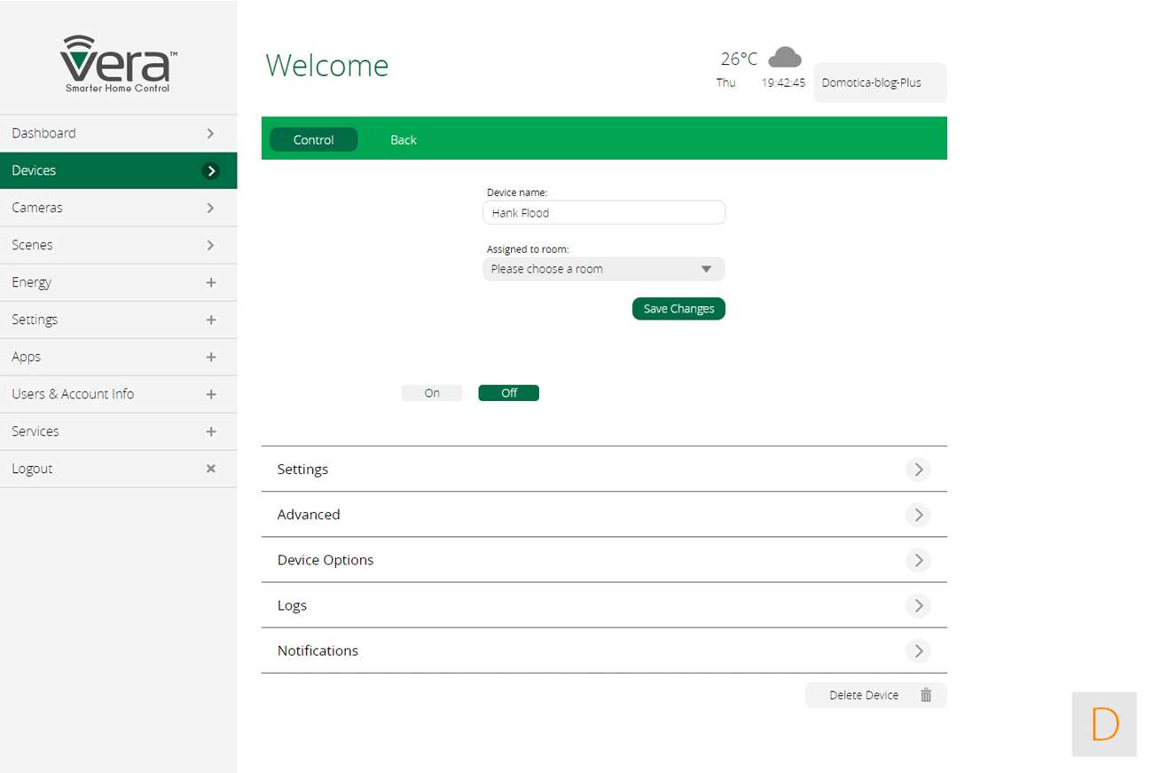 Het toevoegen van deze sensor kun je starten door in te loggen op de Vera en naar de devices te gaan. Vervolgens klik ik op "add device" en zoek ik de HANK op. Helaas zie ik hem niet in het lijstje staan, dus probeer ik hem toe te voegen als generic sensor. Om het toevoegen te starten verwijder je de voorkant en verwijder je het lipje bij de batterij en druk je 3x op het toevoegen knopje. Het LEDje zal gaan knipperen (5 sec) om aan te geven dat het toevoegen is gelukt. De sensor werd netjes toegevoegd en alles werkt zoals het hoort. Ik zie de sensor en batterij status.