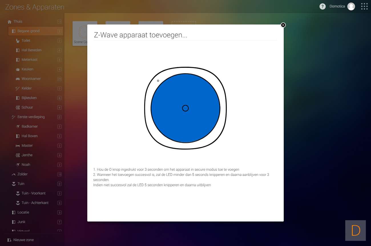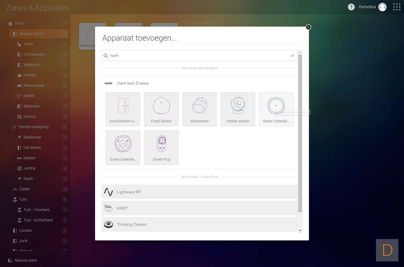 Als eerste is de Homey aan de beurt om de HANK One Key toe te voegen. Je kunt het toevoegen starten door in te loggen op de Homey en naar het apparaten gedeelte te gaan. Vervolgens klik je op het plusje en zoek je de HANK op. Als je de APP niet geïnstalleerd moet je dit eerst even doen. De volgende stap is het starten van de "toevoegen procedure" op de Homey. Verwijder hierna het plasticclipje bij de batterij door het klepje aan de achterkant los te halen. Druk hierna 3x snel achter elkaar op de knop. Het LEDje aan de voorkant zal blauw knipperen om hierna 5sec. lang aan te blijven om aan te geven dat het toevoegen gelukt is. Zorg altijd dat de button dicht in de buurt van de Homey is.