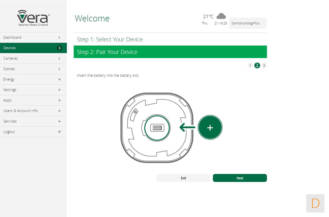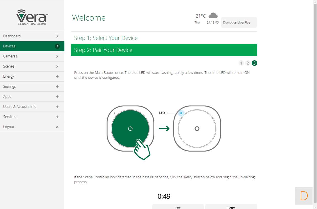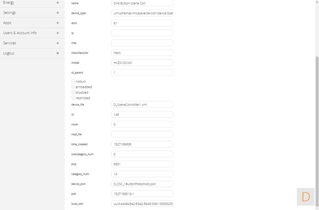 Om de button toe te voegen log je in en ga je naar het device gedeelte. Vervolgens klik je op "add device" en zoek je de HANK op. Voor de verandering zie ik het juiste apparaat er tussen staan. Na het starten van de leer modus verwijder ik de achterkant van de sensor om de batterij te plaatsen. Ik druk hierna 3x op de button. Het LEDje aan de voorkant zal blauw knipperen om hierna 5 sec. lang aan te blijven om aan te geven dat het toevoegen gelukt is. Zorg dat je dichtbij de controller blijft.