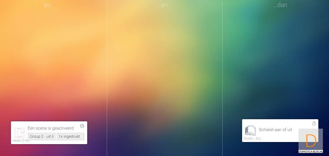 Onderstaand voorbeeld laat zien als er 1 keer wordt geklikt op de knop en dat dan een lamp aan moet gaan.