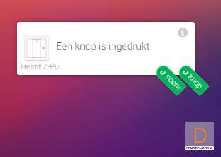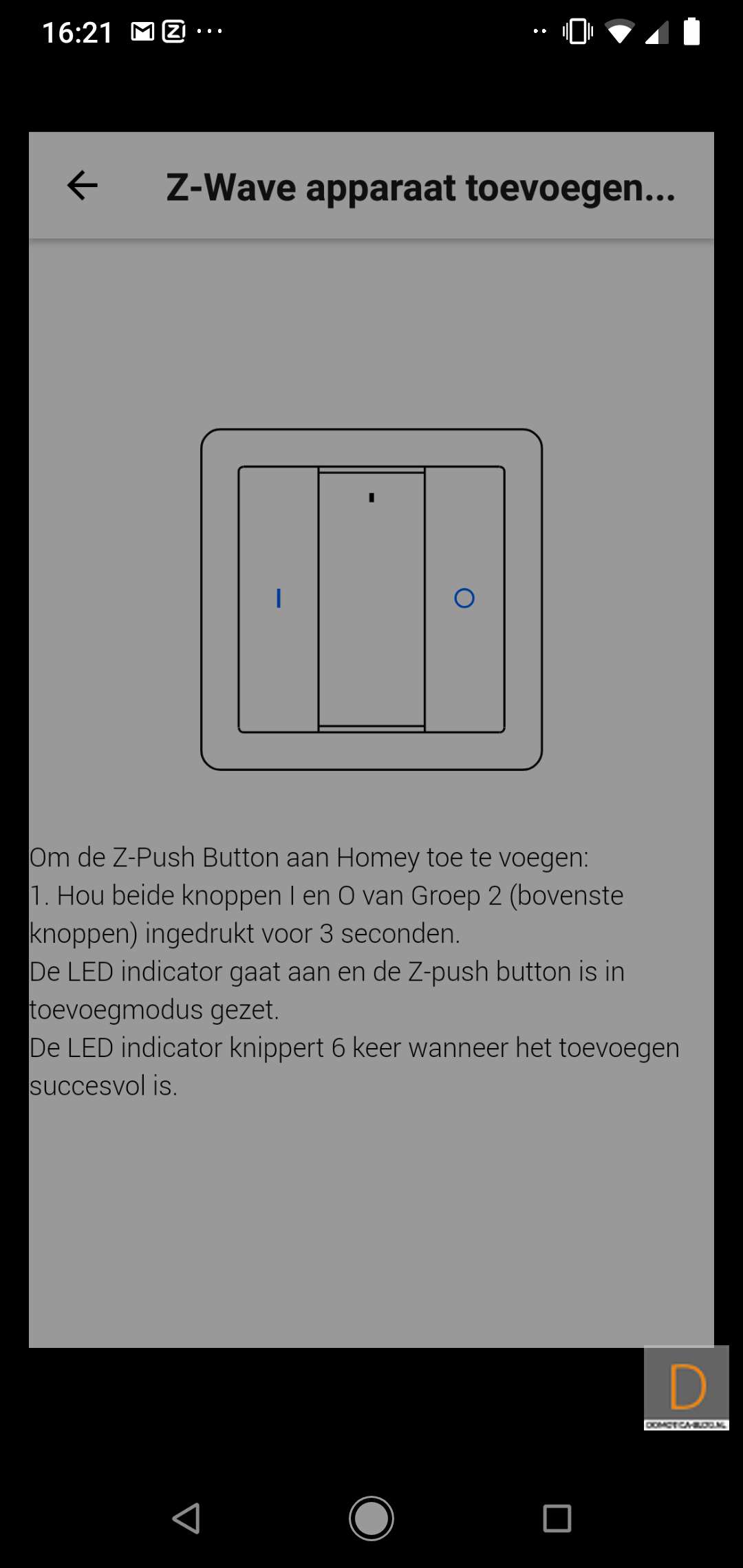 Als eerste controller pakken we de Homey. Je kunt het toevoegen starten door in te loggen en naar je apparaten toe te gaan. Vervolgens klik je op het plusje en zoek je de Heatit Z-Push button 2 op. Mocht je de APP nog niet geïnstalleerd hebben dan moet je dit eerst doen. Hierna start je het toevoegen op de Homey en hou je op de button beide knoppen 3 seconde ingedrukt. Het LEDje aan de voorkant zal oplichten en als het toevoegen succesvol is geweest zal deze 6 knipperen. Hij werd bij mij goed toegevoegd en ik zie hem verschijnen bij mijn apparaten. Er is geen configuratie mogelijkheid.