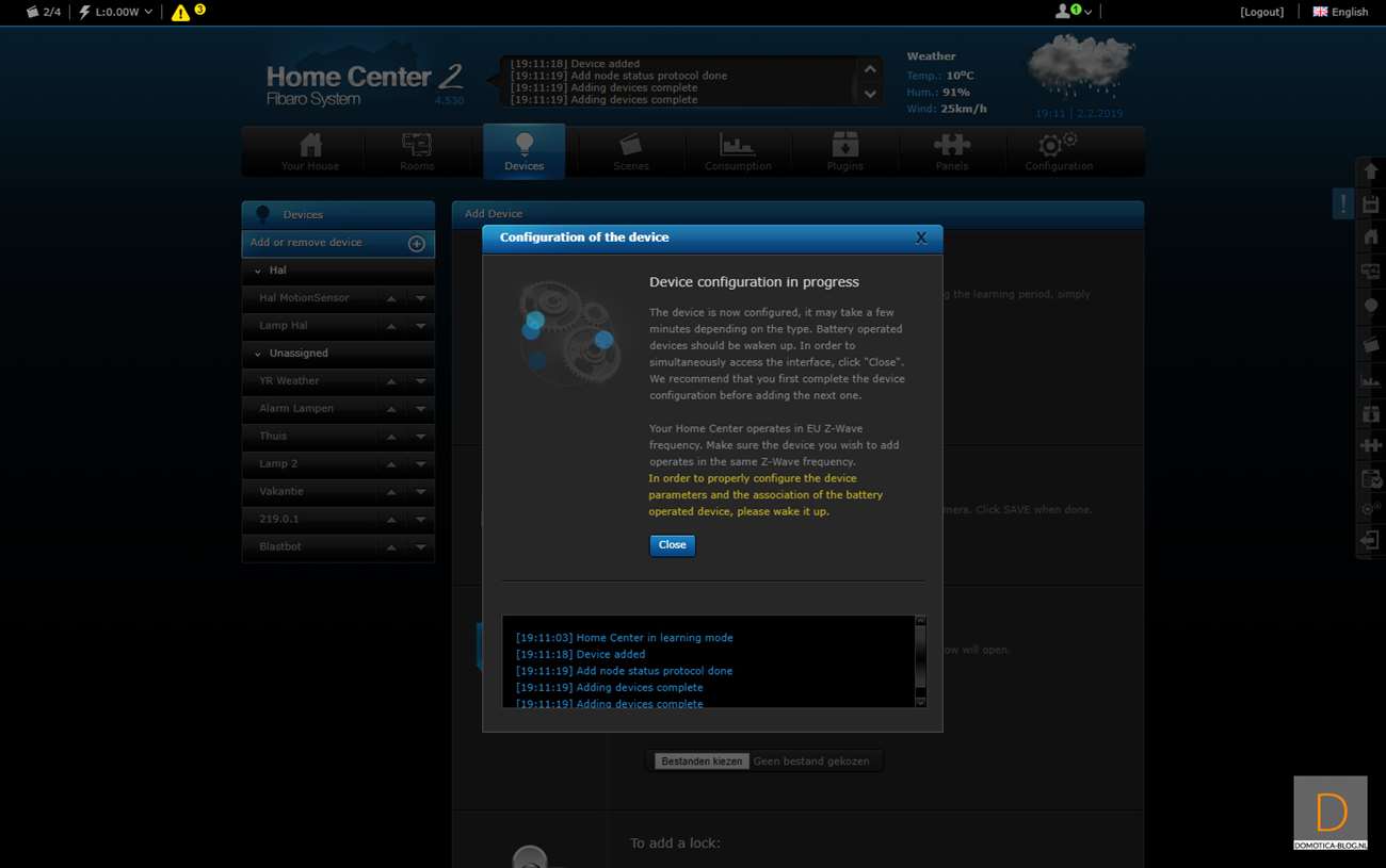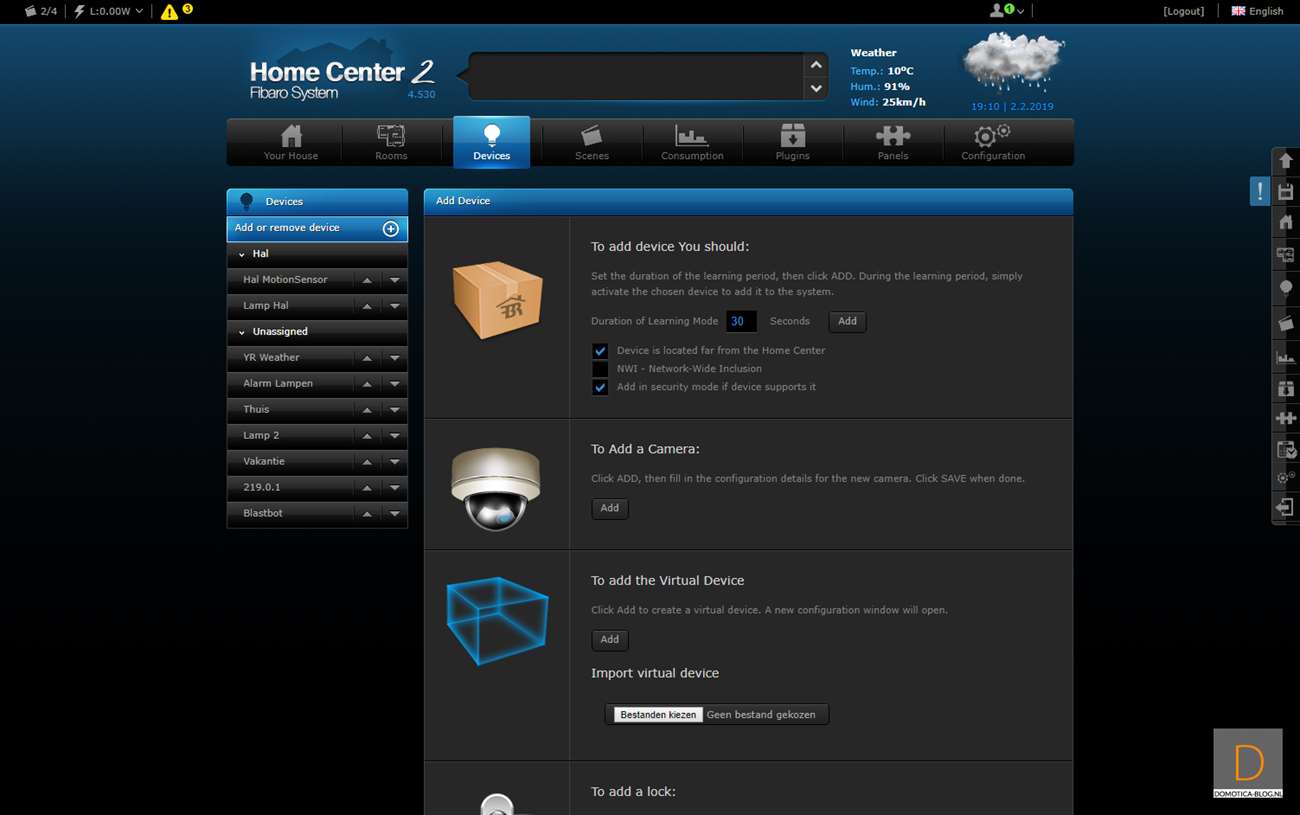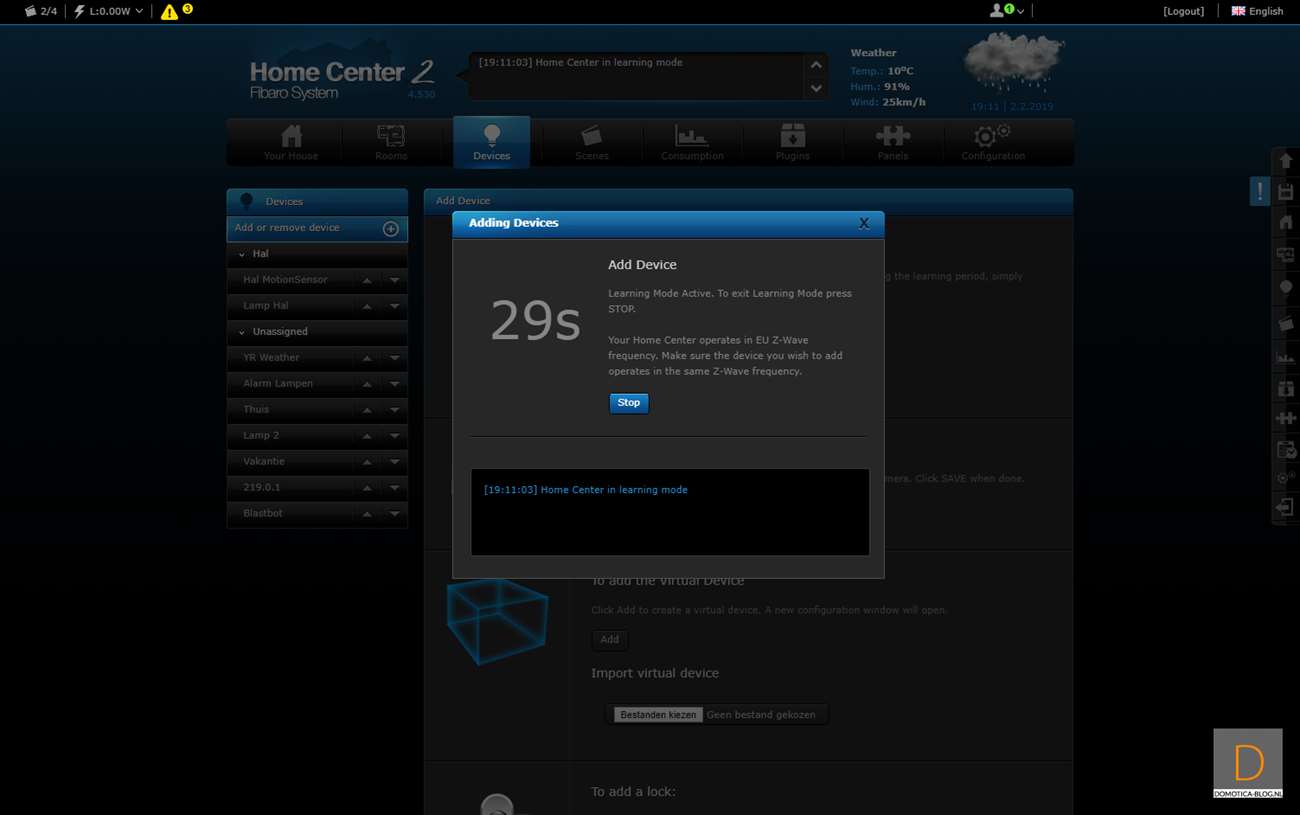 We hebben deze button nu bij 2 controllers succesvol toegevoegd dus bij de HC2 van Fibaro moet dit ook wel gaan lukken. Het toevoegen gaat weer door de controller in de "toevoegen" stand te zetten. Dit kun je doen door naar je apparaten te gaan en dan op "add new device" te klikken. Hierna op ADD om het op te starten. Vervolgens druk je 3 seconden lang de beide knoppen van de button te gelijk in. Het LEDje aan de voorkant zal oplichten en als het toevoegen is gelukt zal deze 6x gaan knipperen.
