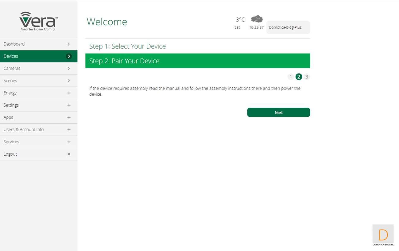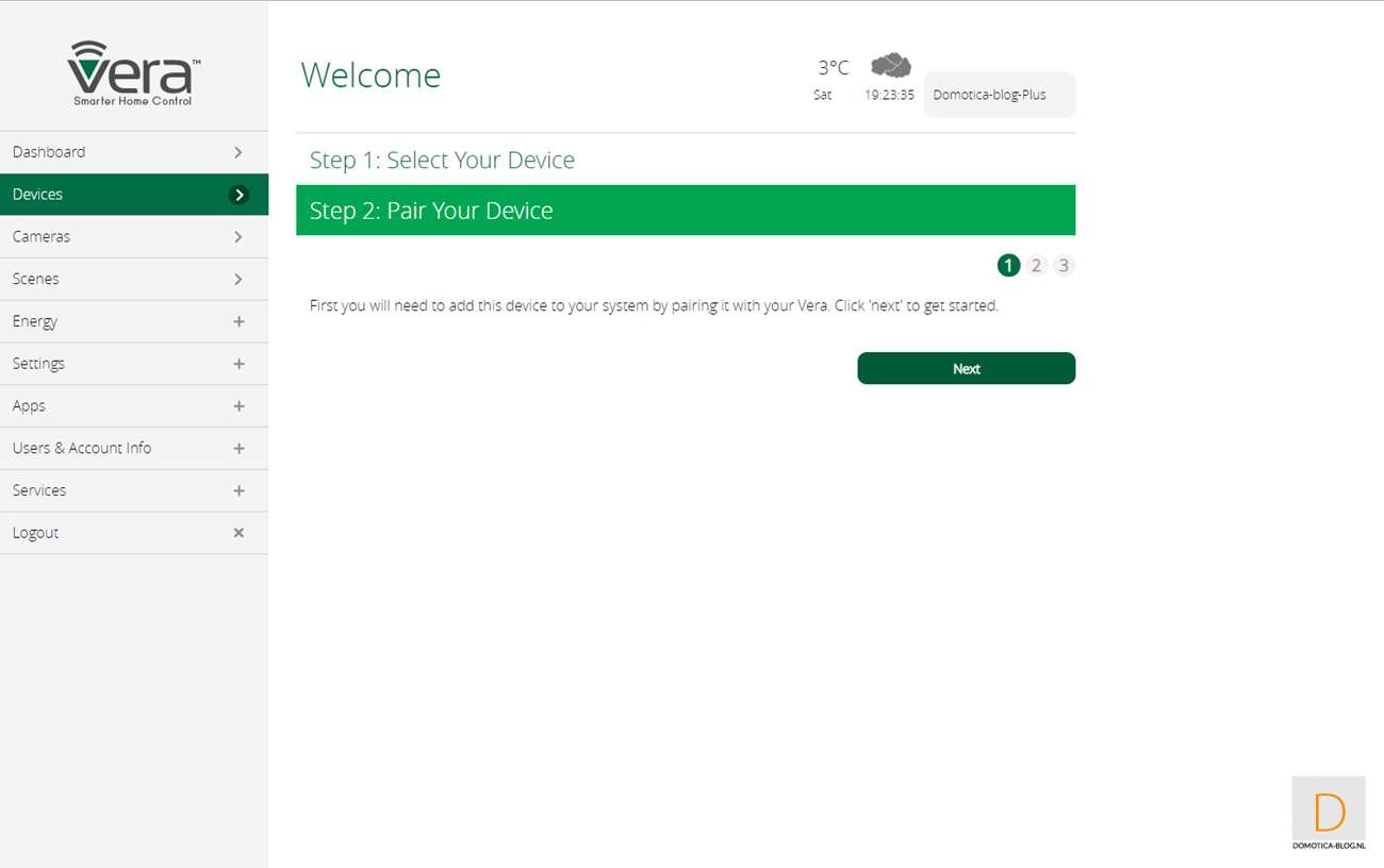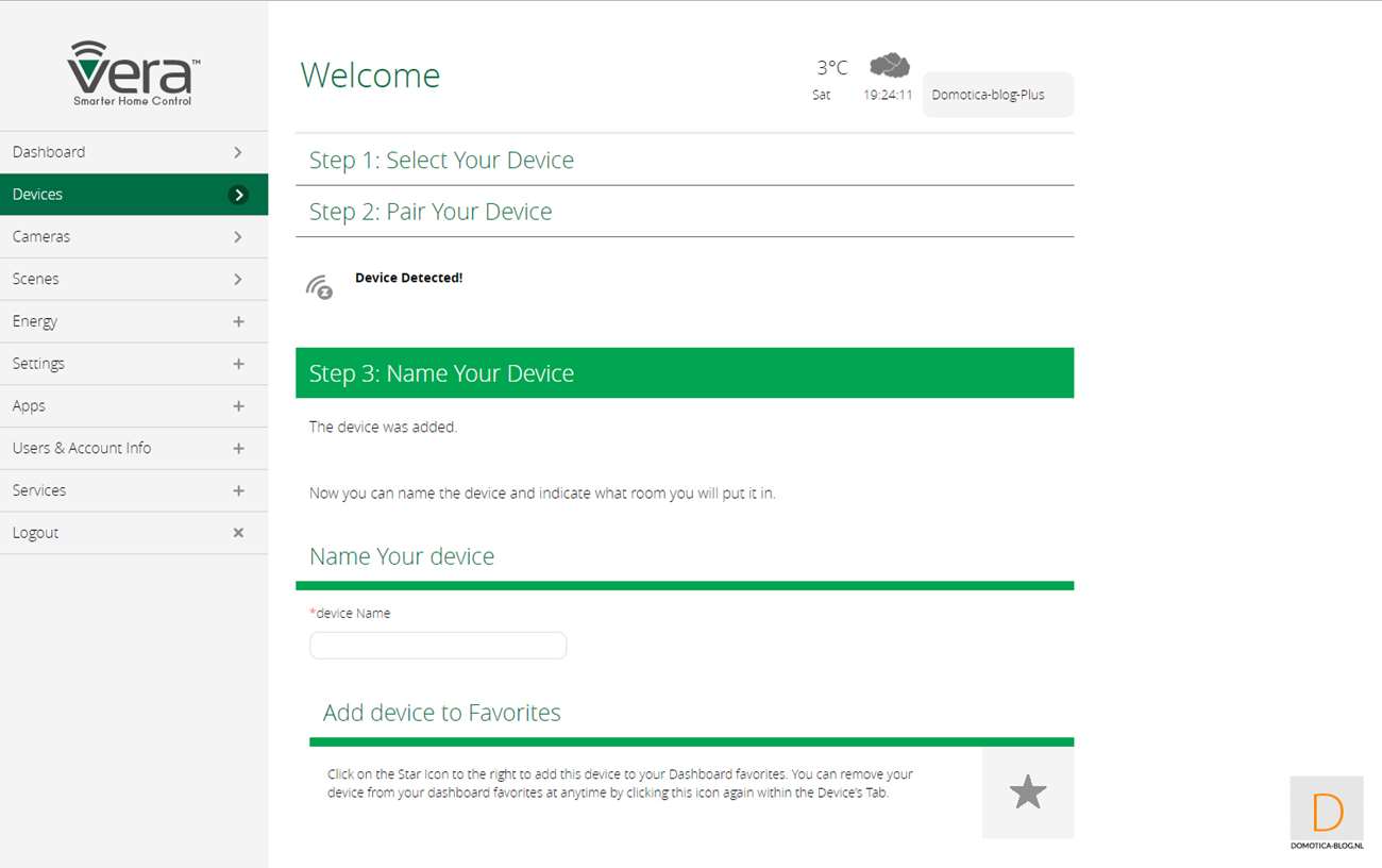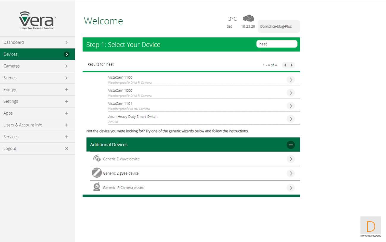 Het toevoegen van deze button kun je starten door in te loggen op de Vera en naar de devices te gaan. Vervolgens klik ik op "add device" en zoek ik de Heatit op. Helaas zie ik hem niet in het lijstje staan, dus probeer ik hem toe te voegen als generic sensor. Na het 3 seconden lang te gelijk indrukken, van beide knoppen, zie ik hem helaas niet goed verschijnen bij mijn apparaten. Ik moet dus tot de conclusie komen dat deze knop niet goed werkt met de Vera.