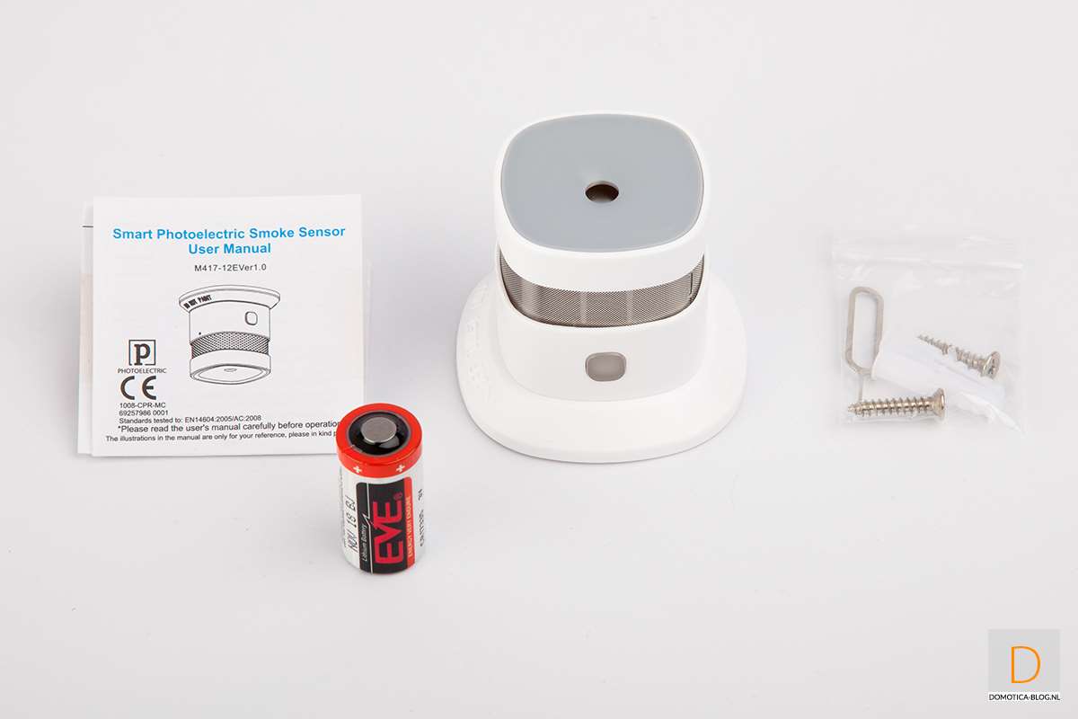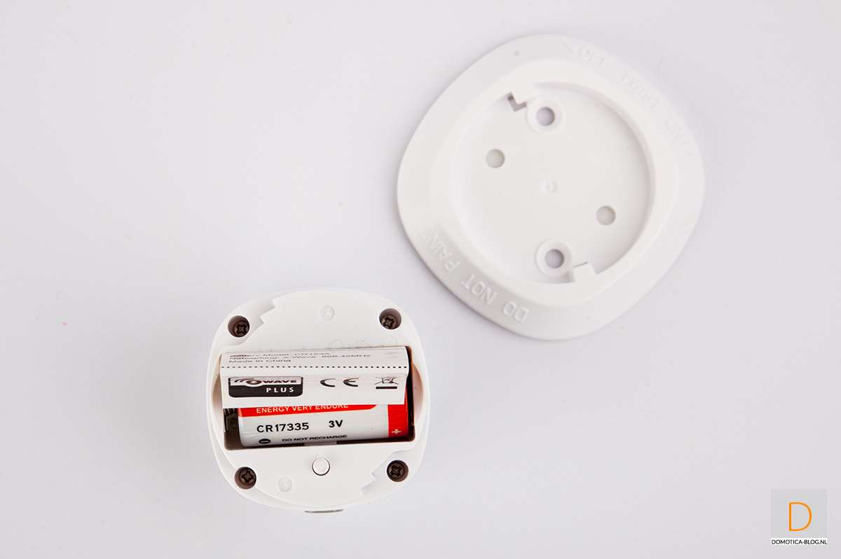 De rookmelder is glad afgewerkt en heeft een witte kleur. Aan de bovenkant zit een gat voor het alarm en aan de zijkant een RVS rooster om te zorgen dat de rook goed naar binnen kan. Het vast maken aan het plafond gaat door de meegeleverde voet, die aan de onderkant een dubbelzijdige sticker heeft. Er worden ook schroeven meegeleverd om hem echt goed vast te maken. In deze voet kun je dan de rookmelder vastdraaien. Gemakkelijk als je de batterij moet vervangen. Deze batterij is de bekende CR123A welke wel in meer Z-Wave apparaten gebruikt wordt.