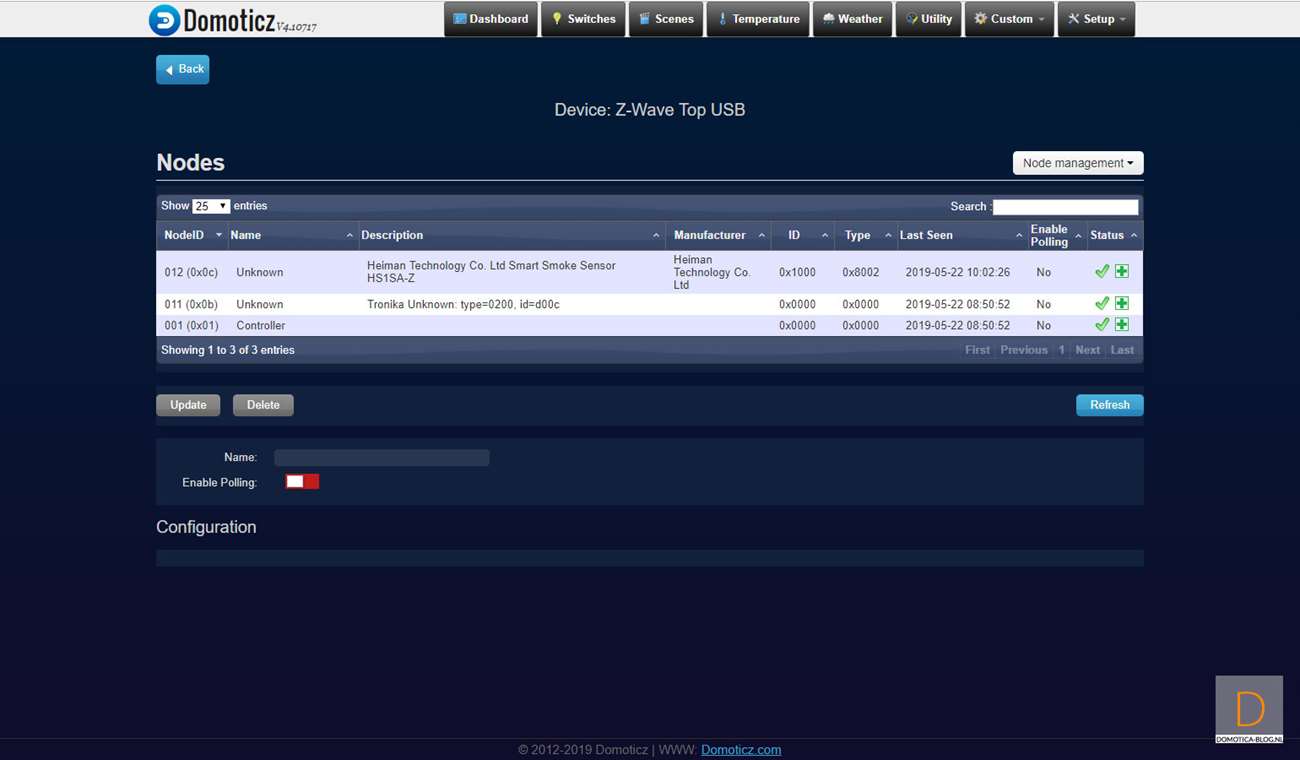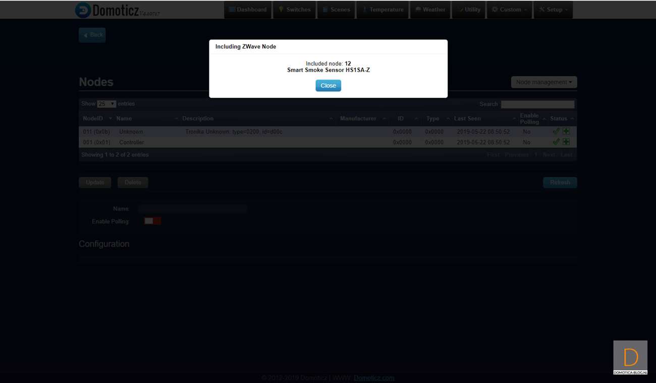 Het valt op dat de rookmelder niet meteen als een rookmelder gezien wordt. Dit kun je eenvoudig wijzigen via de configuratie.