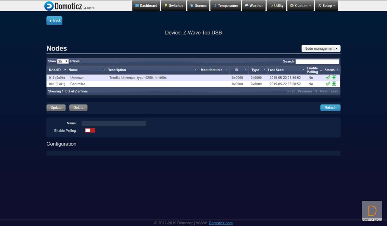 Installatie via Domoticz: