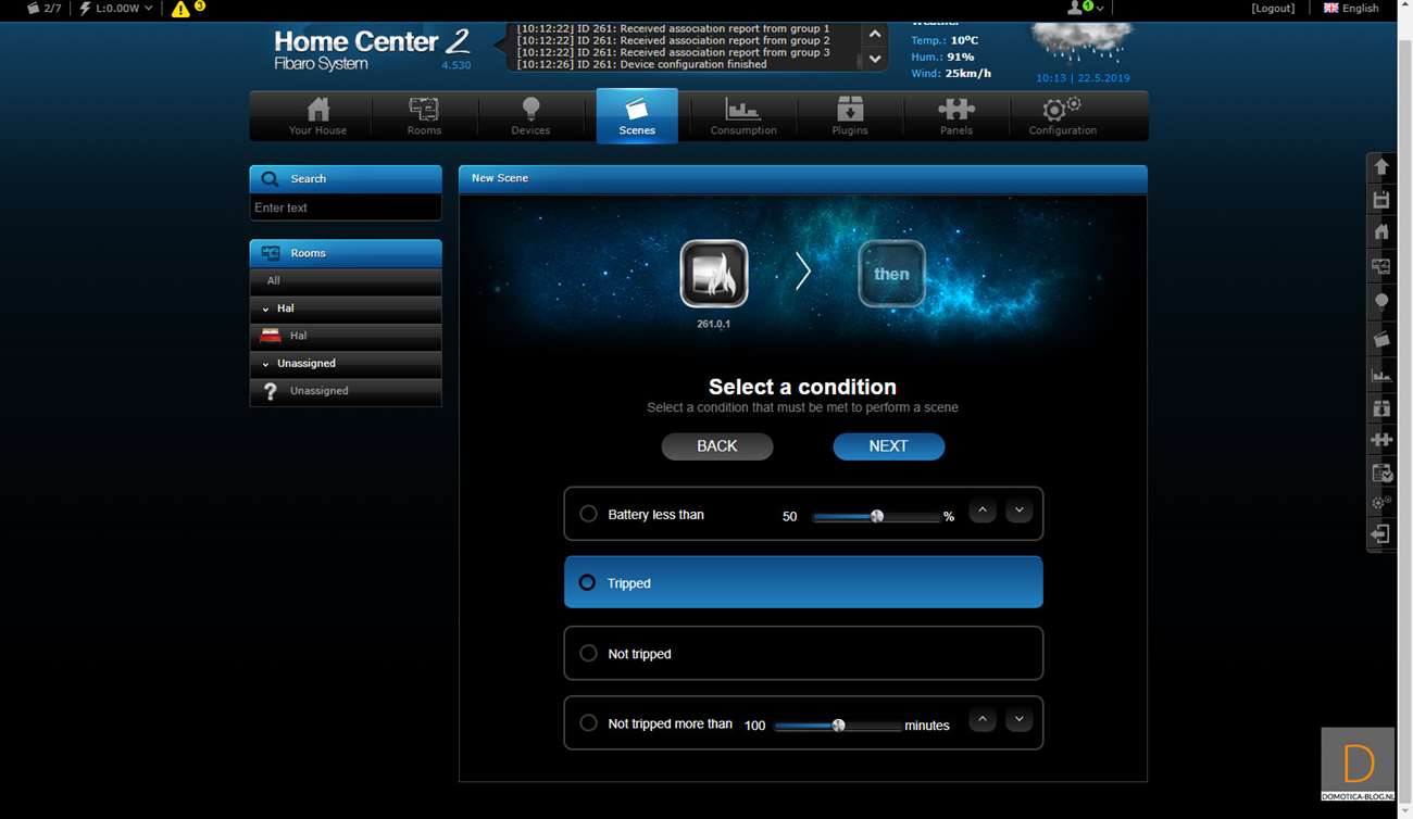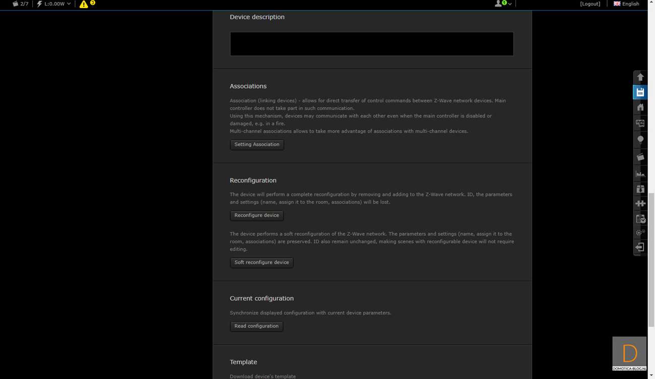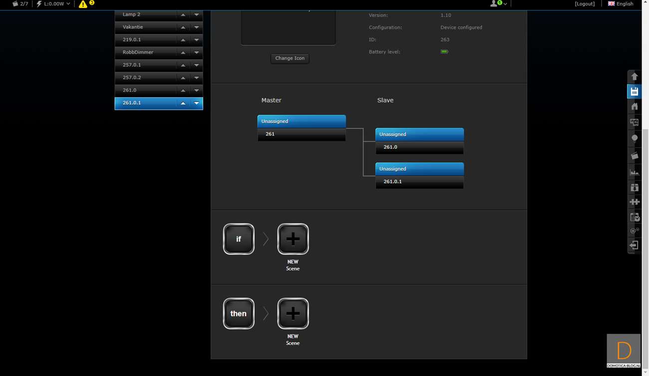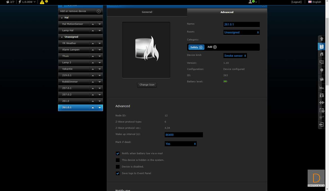 Hij werd hierna toegevoegd aan de HC2. Het valt mij op dat er gemeld wordt dat er nog geen template beschikbaar is. Ondanks dit, zie ik netjes op het dashboard de knop verschijnen. Ik zie tevens het batterijniveau. Wat wel opvallend is dat ik ook een extra node erbij krijg. Deze doet voor de rest niks dus kun je gewoon negeren.