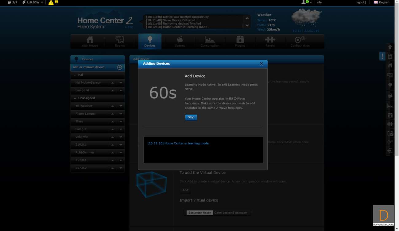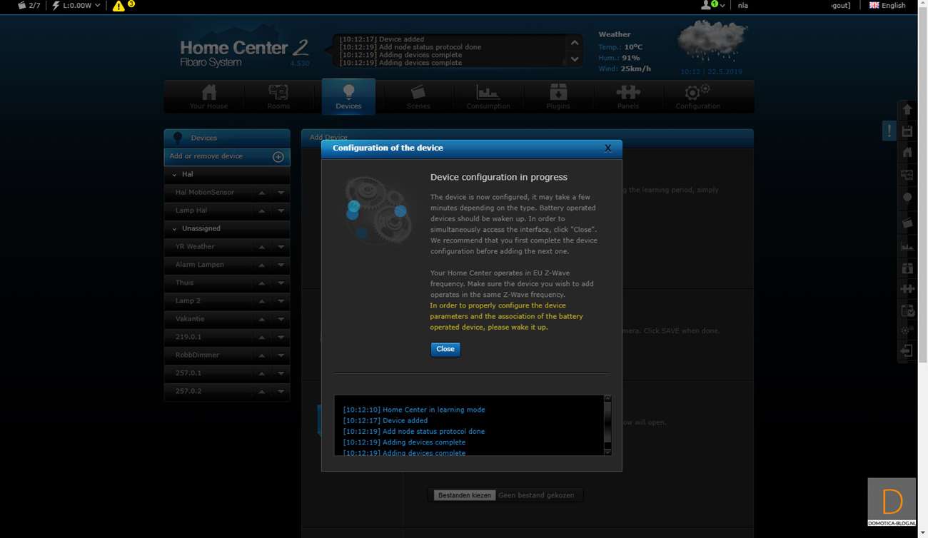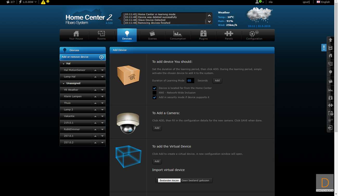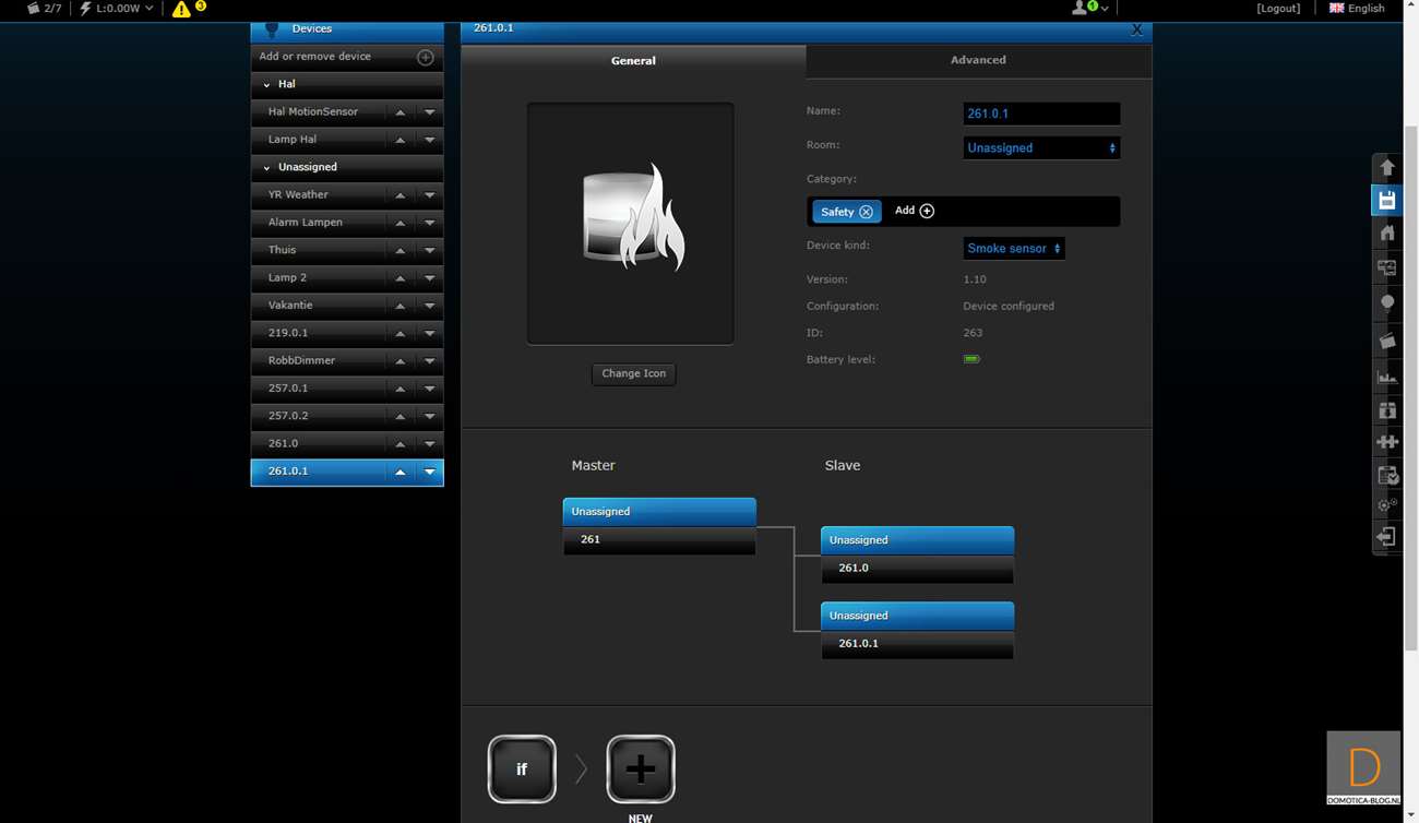 We hebben deze rookmelder nu bij 2 controllers succesvol toegevoegd dus bij de HC2 van Fibaro moet dit ook wel gaan lukken. Het toevoegen gaat weer door de controller in de "toevoegen" stand te zetten. Dit kun je doen door naar je apparaten te gaan en dan op "add new device" te klikken. Hierna op ADD om het op te starten. Vervolgens druk je 3x in het gaatje aan de zijkant met het bijgeleverde pinnetje in de rookmelder. Het LEDje aan de voorkant zal 3x oplichten.
