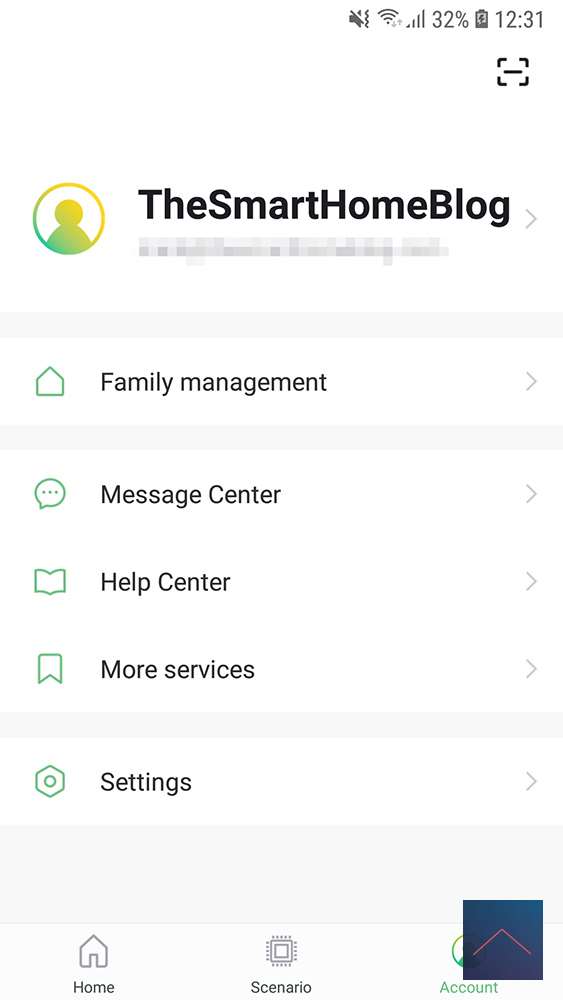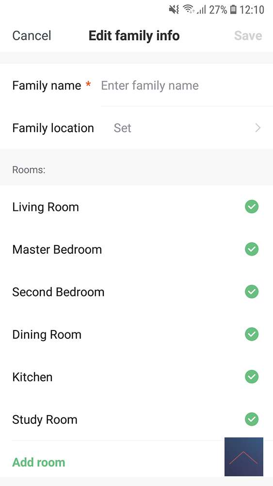 Terug in het account menu selecteren we “Family management”, hier kunnen we de familie naam invoeren, een locatie selecteren en verschillende ruimtes aanmaken/beheren.