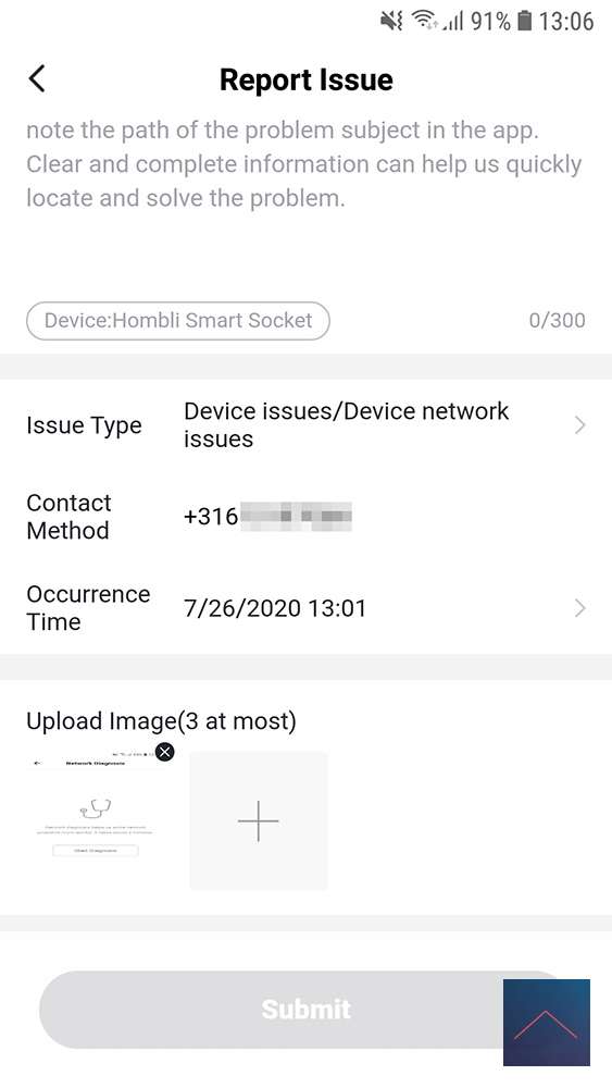 Bij report issue kom je weer op dezelfde pagina als hierboven beschreven.