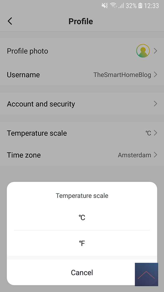 Bij “Temperature scale” kun je de temperatuur kiezen in Graden of Fahrenheit. En als laatste in het profiel kun je de tijd zone instellen.