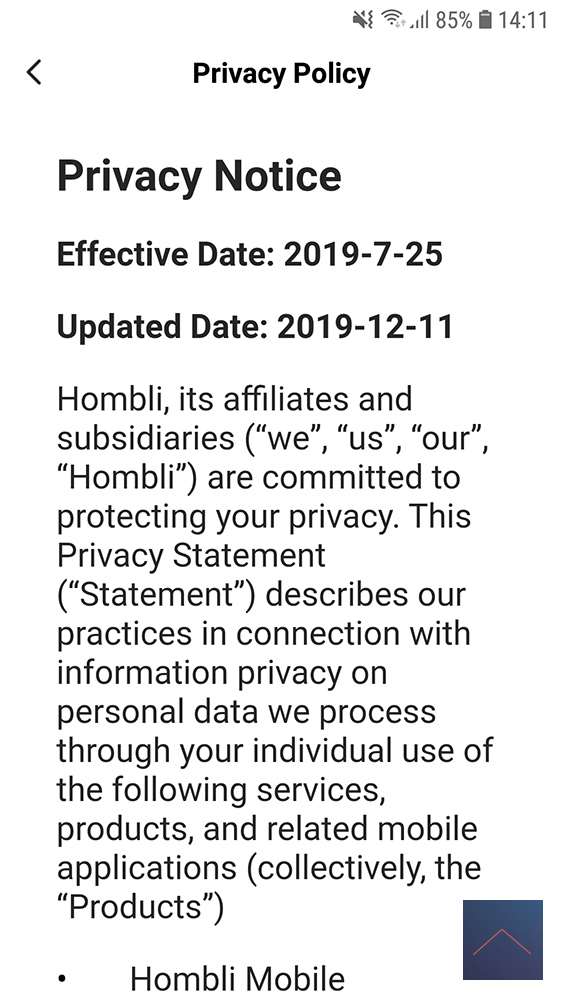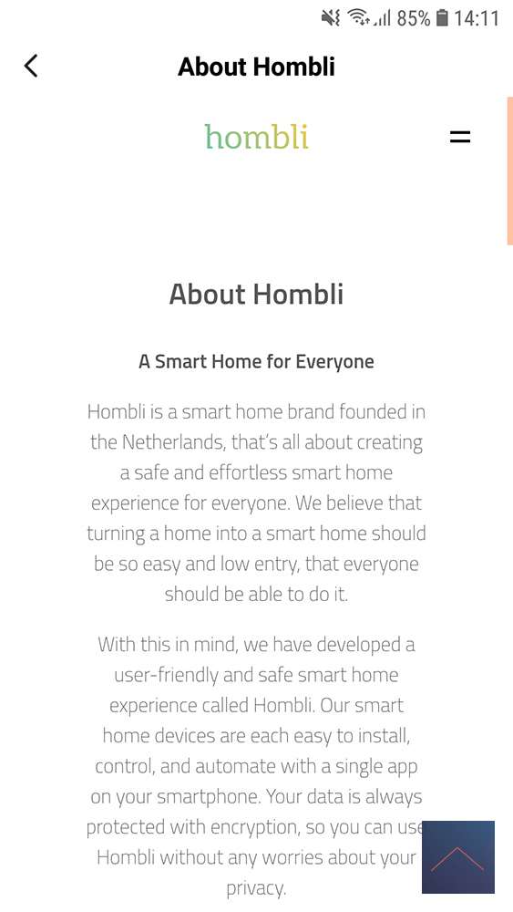 Bij “Privacy Policy” en “Service Agreement” wat we in het begin natuurlijk niet hebben gelezen staan een aantal interessante punten. Houd er rekening mee dat je gegevens wel gebruikt kunnen worden door alle bedrijven die vallen onder het moederbedrijf en geassocieerde bedrijven van Avanca International. Ook kunnen gegevens via derde partijen verwerkt worden om een service te verlenen, waar Hombli geen verantwoordelijkheid over heeft. Voor de wet doen ze er natuurlijk alles aan om je prive gegevens te beschermen, alle internet verkeer gaat ook over een beveiligde verbinding en in mijn opzicht is een VPN connectie ook geen probleem. Je gegevens staan wel in de cloud van Hombli en dat kan natuurlijk altijd gehackt worden, maar dat kan je ook overkomen als je een fysieke controller in je huis hebt staan.