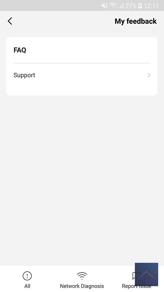 Onderin het scherm staan de keuzes: All, Netwerk Diagosis en Report Issue.