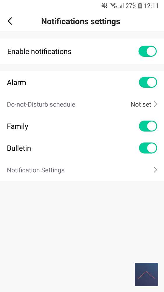 Bij “Push notificaties” kun je alle notificaties aan- of uitzetten, ook de Alarm, Family en Bulletin kun je apart aan- of uitzetten. Er is een mogelijkheid om een stoor me niet schema in te stellen. Handig dat die optie erbij zit, zeker als je je telefoon naast je bed hebt liggen.