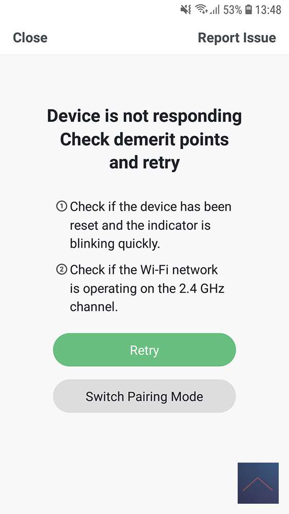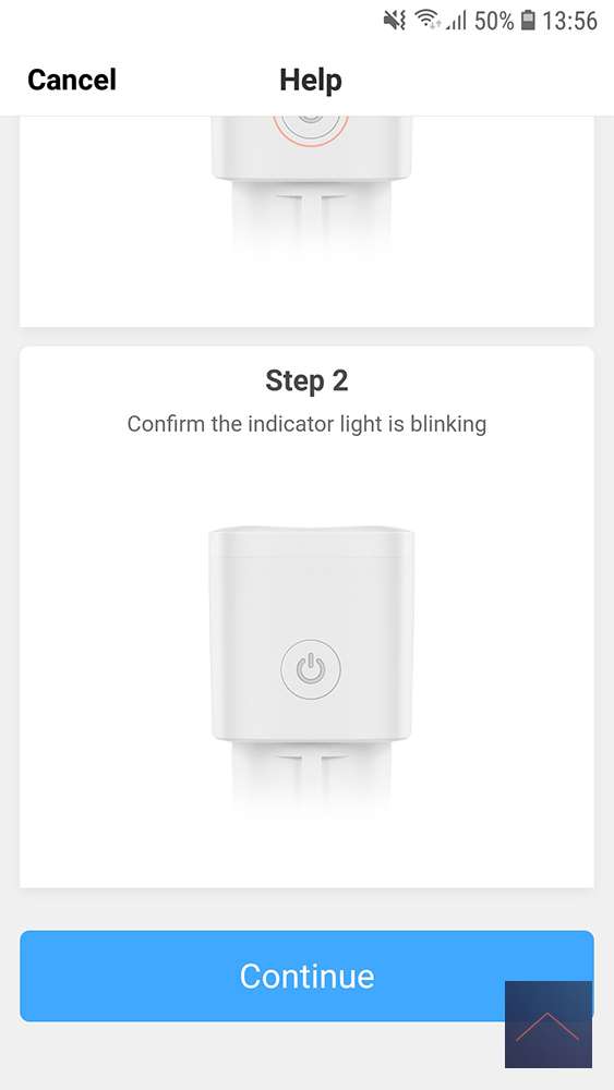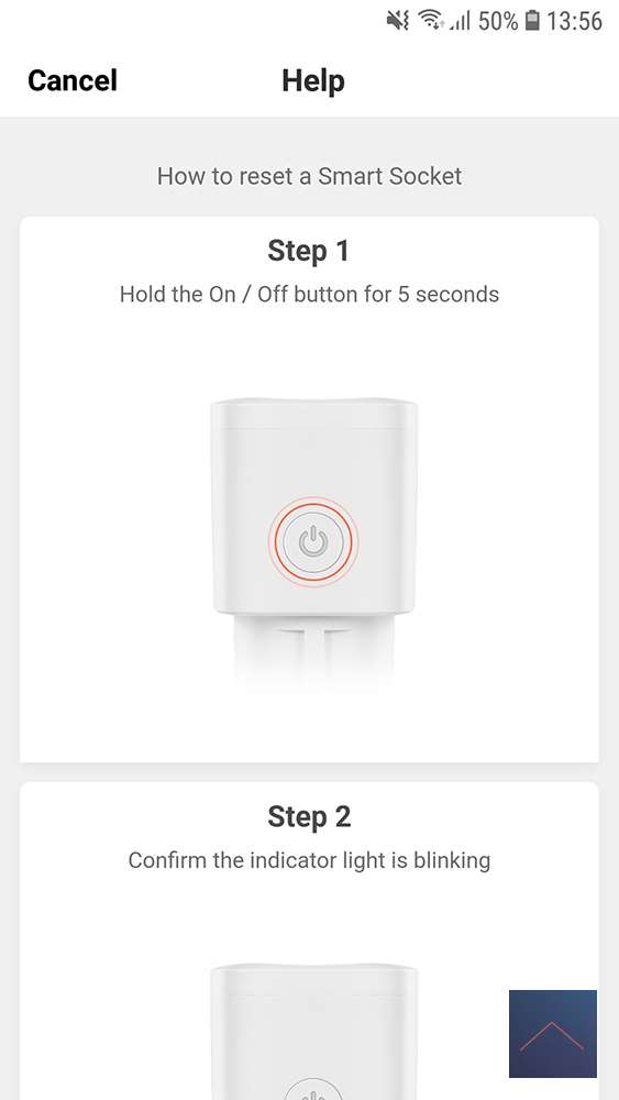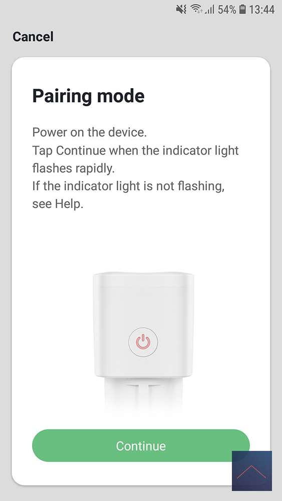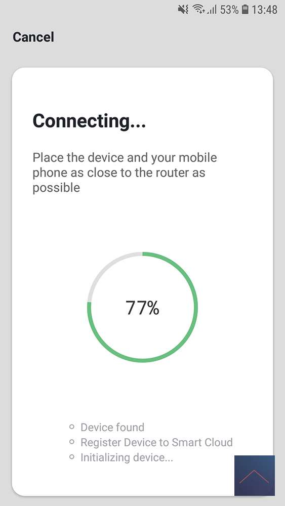 In de volgende stap gaat de APP op zoek naar de Smart Socket. Na een tijdje wachten geeft de APP aan dat hij de Smart Socket niet kan vinden. Ik selecteer Retry en krijg eerst een korte handleiding hoe ik ervoor moet zorgen dat de indicatie licht knippert. Hij knipperde toch echt, maar goed we doen het nog een keer en selecteren Continue. We komen in het zelfde scherm als hiervoor, we moeten nogmaals de WiFi gegevens invullen en het zoeken start weer. Helaas niets gevonden… Ik haal hem uit het stopcontact en wacht even en stop hem er dan weer in. Hij gaat automatisch weer knipperen aangezien hij nog geen instellingen heeft. We voeren het stappenplan opnieuw uit en de APP gaat weer zoeken. Omdat ik het gevoel heb dat het weer niet gaat werken druk ik net voor de 100% op de aan en uit knop van de Smart Socket en opeens ziet de App de Smart Socket en geeft aan deze succesvol te hebben toegevoegd. Vreemd maar het is gelukt, ik hoop dat de andere producten wel wat makkelijker gaan. Ik klik op “Done” en kom meteen in het hoofdscherm van de Smart Socket, ik ga terug naar het hoofdscherm en daar staat de Smart Socket met een mooie foto icoon van het product.