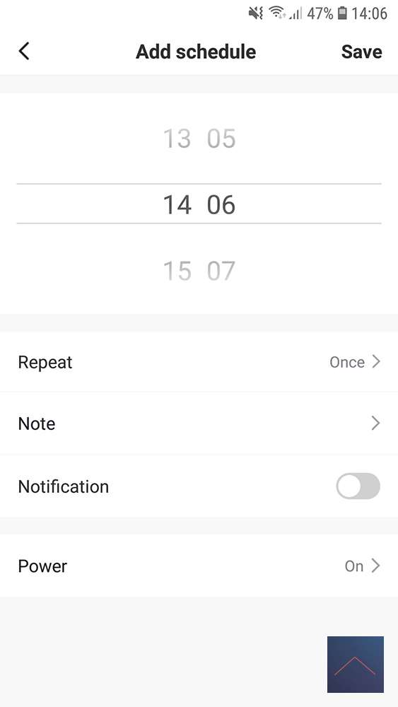 In de Schedule tab kunnen we verschillende tijd schema’s aanmaken. Je selecteert de tijd en bij Repeat kun je kiezen voor eenmalig (Once) of welke dagen van de week. Bij Note kun je een aantekening of naam zetten en daaronder kun je de notificatie aan- of uitzetten. Nu hoef je bij “Power” alleen nog te bepalen of de stroom aan of uit moet gaan. Je slaat hem op en deze schedule komt dan in de lijst te staan, niet onder een naam maar op de tijd. Het prettige van deze schedule is dat je dit op de Smart Socket zelf zet en niet in de cloud, dus als je internet verbinding uit valt zal de schedule blijven werken.