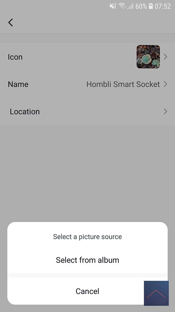 We kunnen als eerst op de naam klikken en kunnen dan de icoon aanpassen met een foto die op de mobiel staat. Erg leuk, maar als ik een foto heb gekozen en daarna eigenlijk toch weer de originele icoon wil, is deze niet meer te kiezen. De icoon wordt niet aangegeven als optie, ik kan alleen nog een foto op mijn telefoon selecteren. Ik heb dus geen mogelijkheid om de standaard icoon terug te krijgen. Daaronder kunnen we de naam van de socket aanpassen en als laatste kun je bij location de ruimte aangeven als je die hebt aangemaakt.
