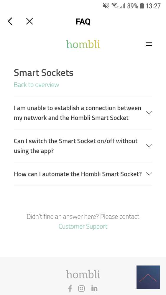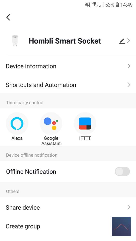 Daaronder Offline Notification een goede optie om een bericht te krijgen wanneer de Hombli APP de socket niet meer kan vinden.