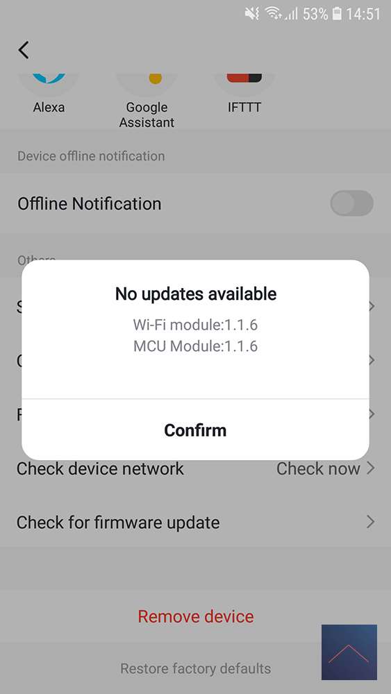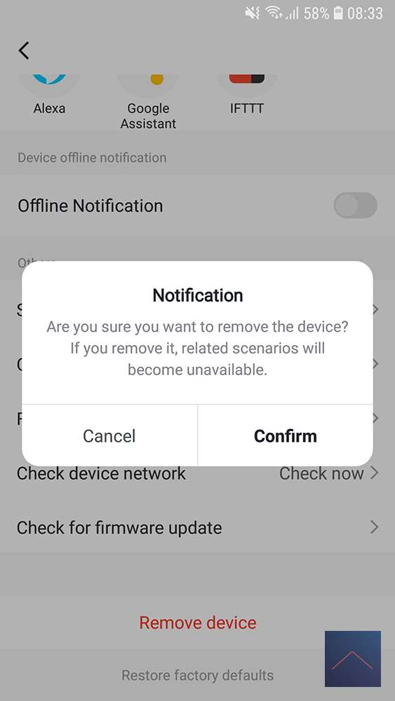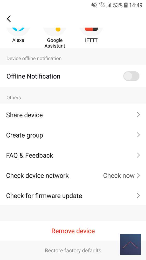 Als laatste is er de mogelijkheid om de socket te verwijderen uit de Hombli App door Remove device te selecteren. Gelukkig moet je deze keuze bevestigen, zodat je dit niet per ongeluk doet.