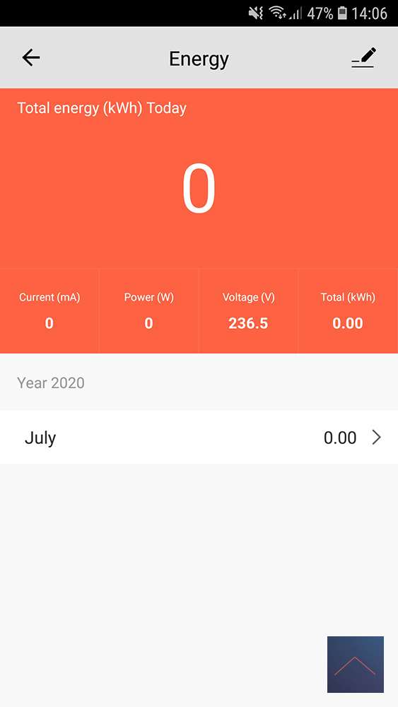 Bij Energy kun je zien wat het gebruik is van vandaag in kWh, daaronder zie je de current (mA), Power (W) en Voltage (V) op dit moment. Daaronder een overzicht van het verbruik per maand, als je op een maand klikt krijg je een overzicht van het verbruik van de dagen in die maand. Hoe lang deze informatie wordt vast gehouden op de socket kan ik niet achterhalen. Ook is het jammer dat ik deze informatie niet kan kopiëren om te gebruiken voor bepaalde verbruik berekeningen.