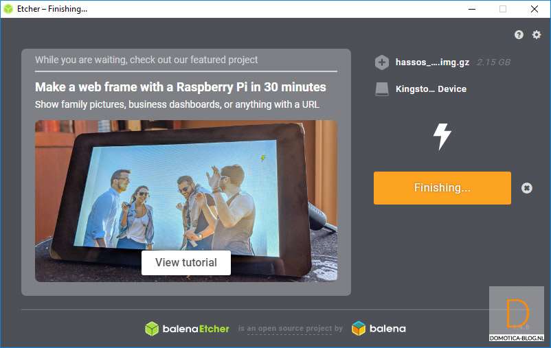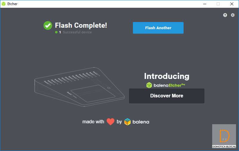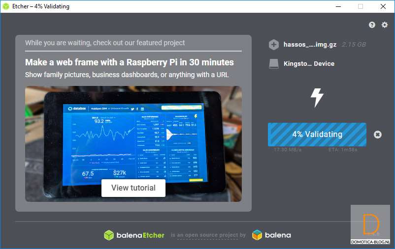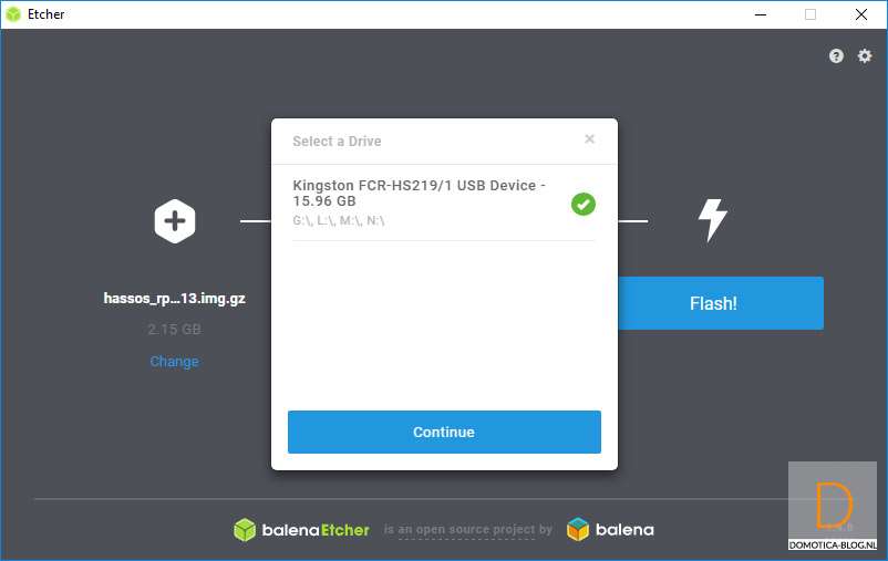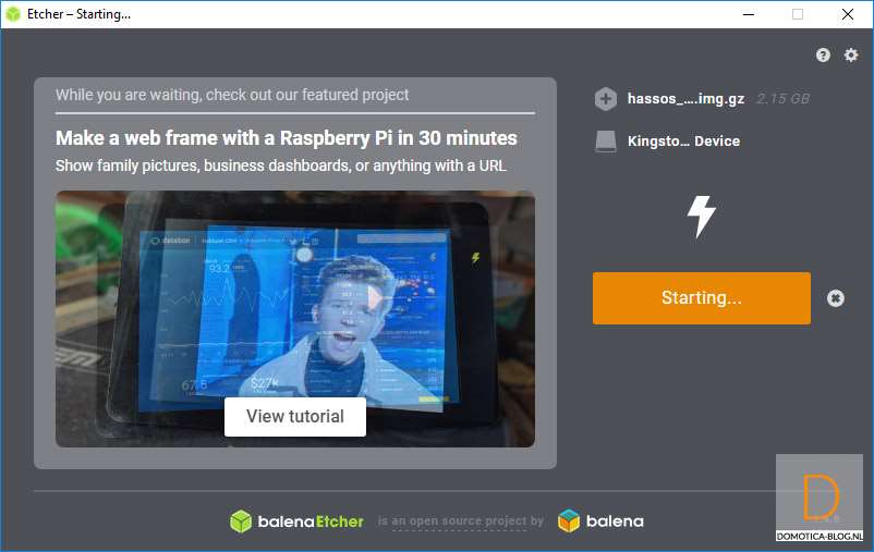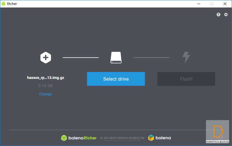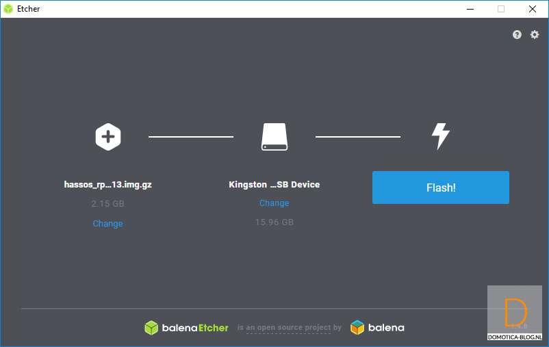 2. Zorg dat je Etcher geïnstalleerd hebt en zet de HASS.io image op de SD-kaart