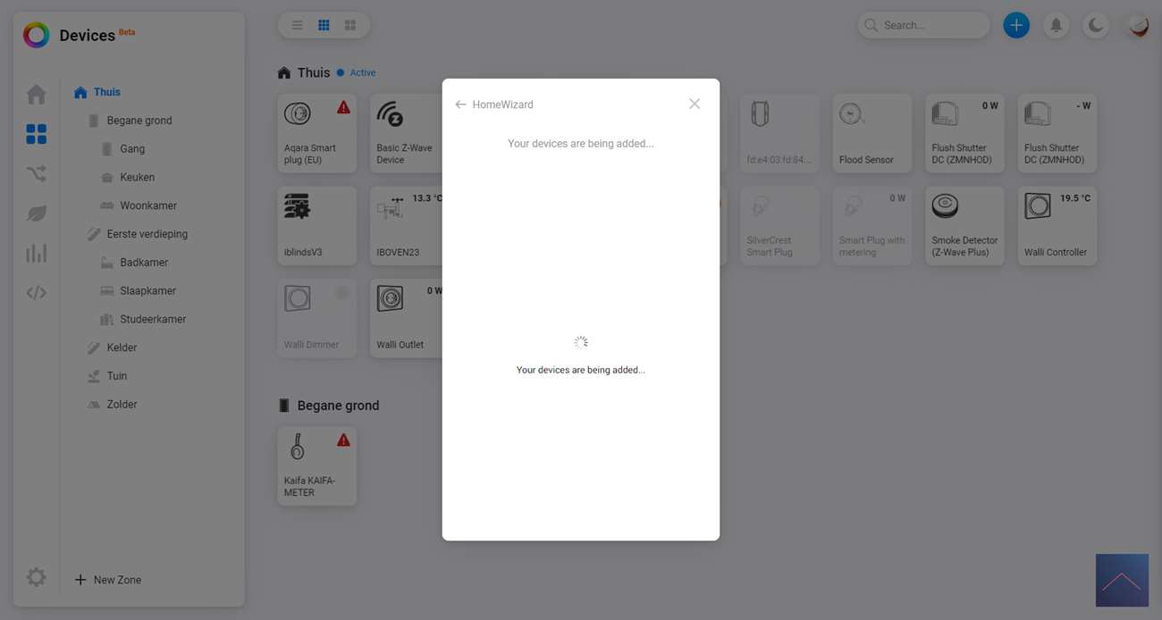 Hierna gaat hij direct zoeken naar de tussenstekker en hij werd hij vrij snel gevonden. Na wat stappen zien we hem verschijnen bij mijn apparaten.