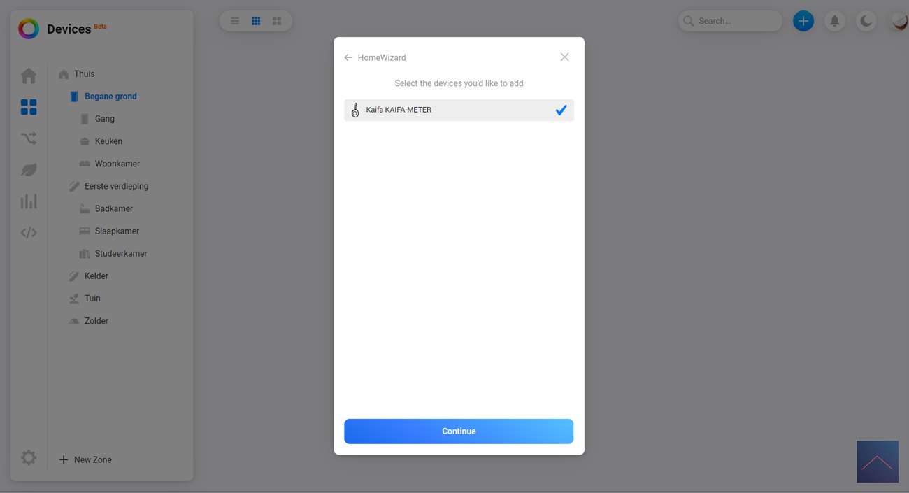 Hierna gaat hij direct zoeken naar de meter en hij werd bijna vrij snel gevonden. Na wat stappen zien we hem verschijnen bij mijn apparaten.