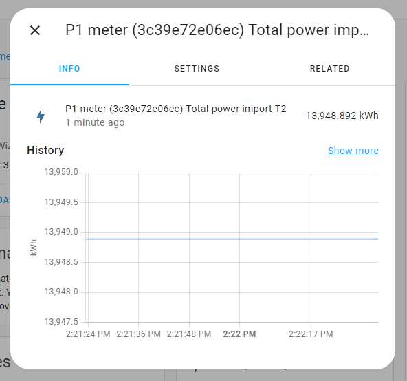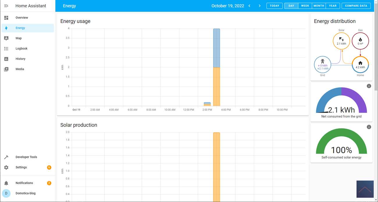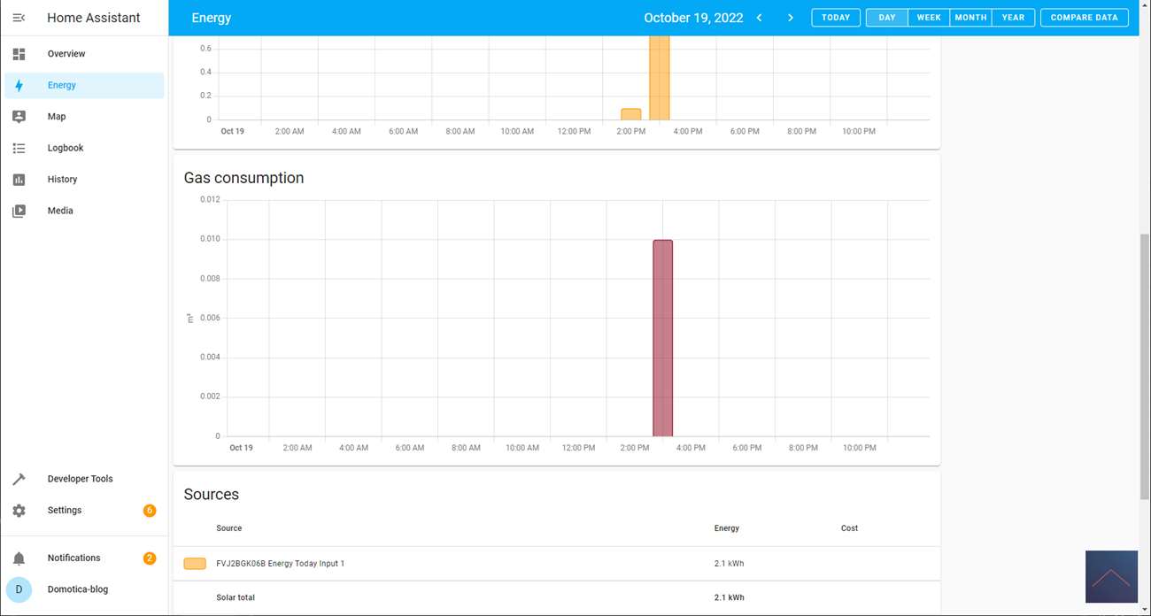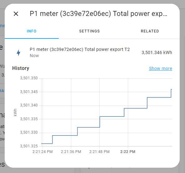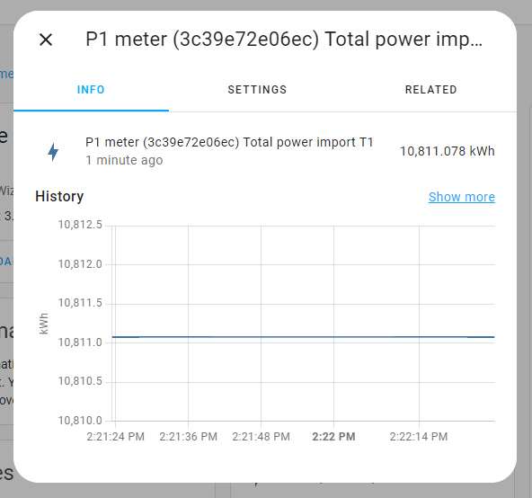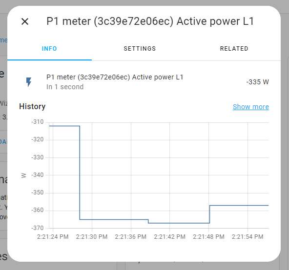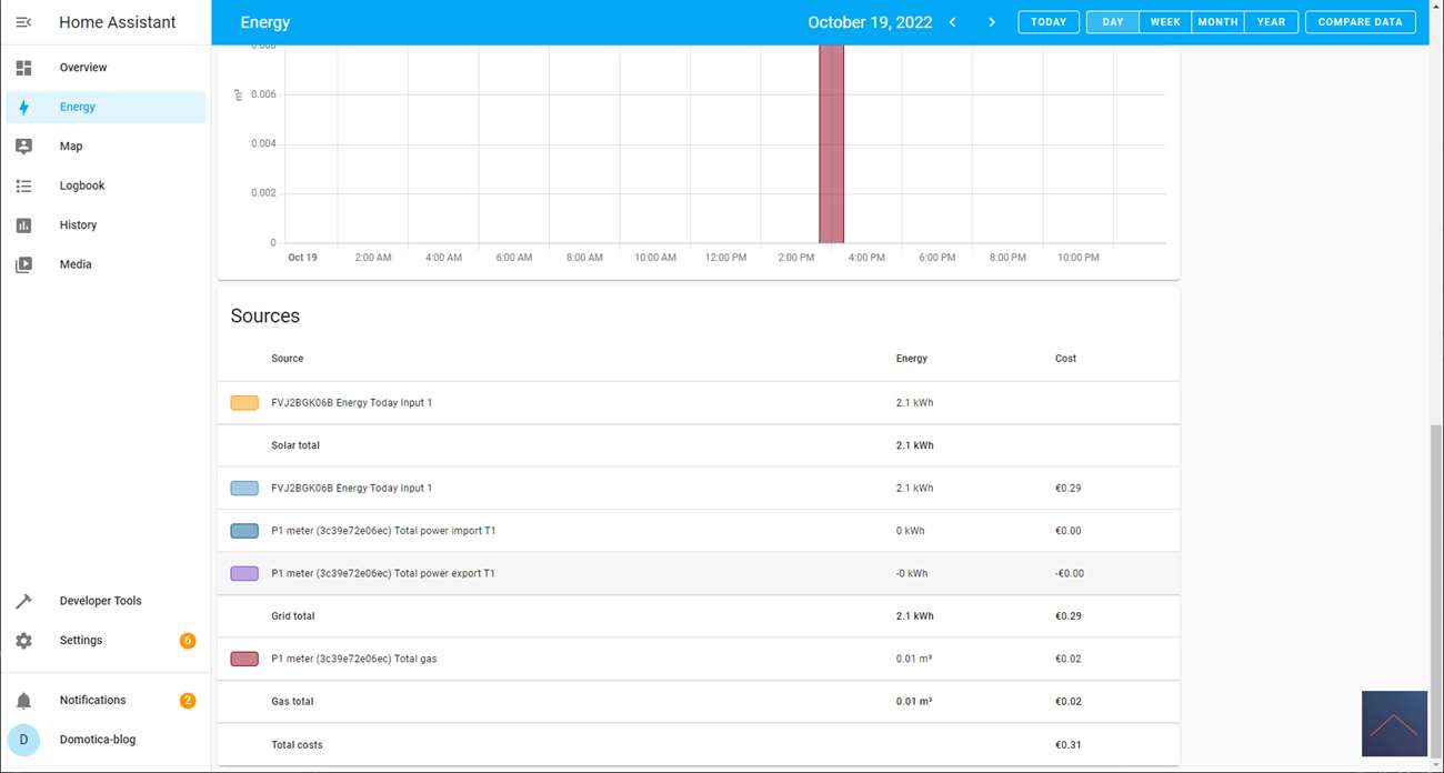 We kunnen de HomeWizard ook gebruiken in het Energy gedeelte. Hierdoor krijgen we nog beter inzichten. Het duurt even tot de waardes binnen komen.