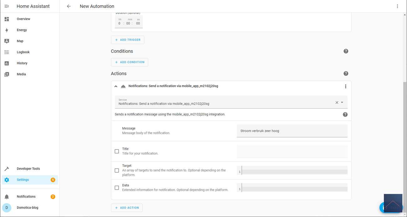 Je kunt natuurlijk van alles bedenken voor het bijhouden van je energieverbruik. Wij maken een regel waarbij, als het verbruik boven de 4500 W komt, dat we dan een noticatie ontvangen op onze telefoon.