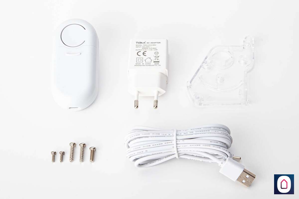 Hij kan van stroom voorzien worden door de bijgeleverde USB adapter en een lange USB kabel van 3 meter. Je kunt hem ook laten werken met twee CR123A batterijen. Alleen worden dan de waardes niet realtime doorgegeven maar 4x per dag.