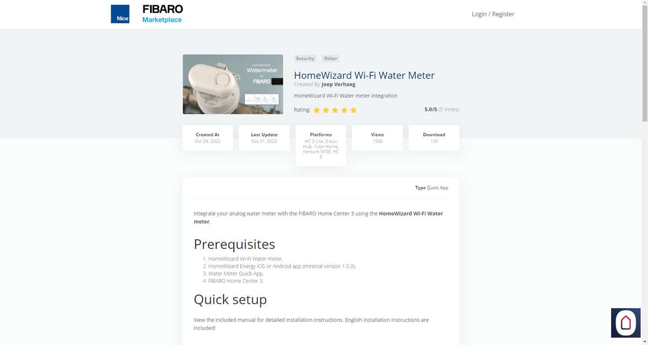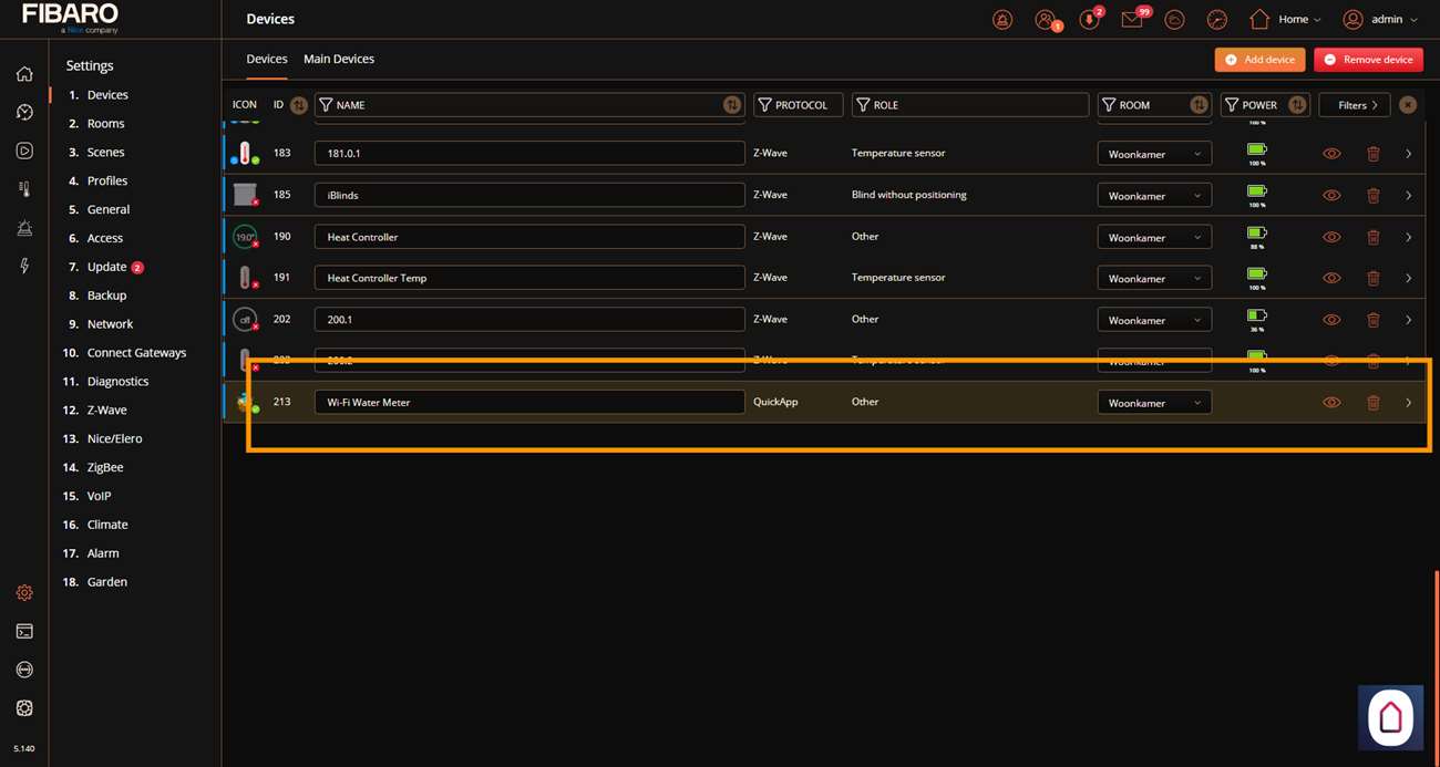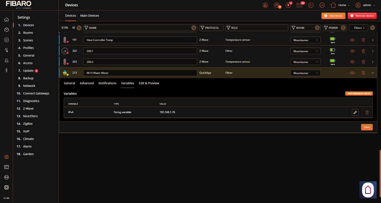 Omdat deze watermeter een API heeft kun je met allerlei hubs verbinden. Zo ook deze HC3 van Fibaro hiervoor moet dan wel iemand een integratie/plugin hebben gemaakt. Gelukkig heeft Joep Verhaeg deze gemaakt.